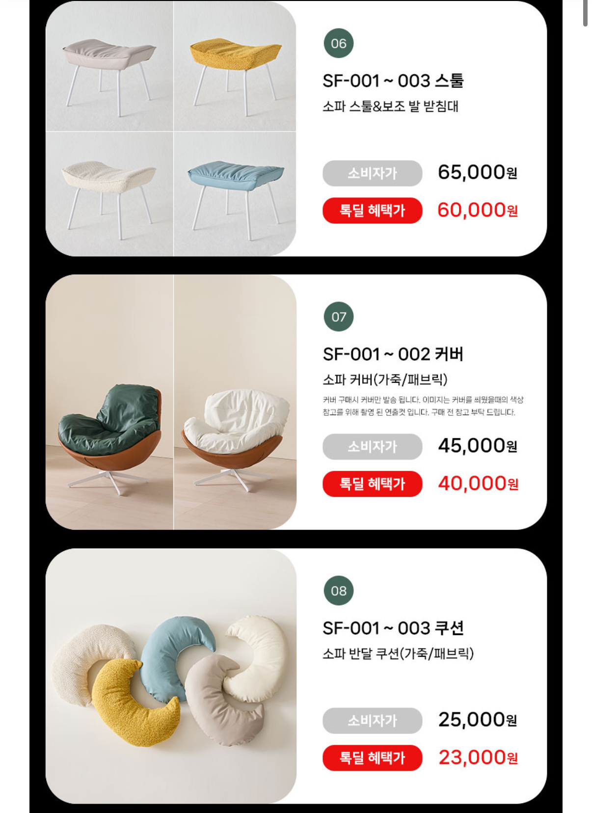 소파스툴&보조 발 받침대와 소파커버, 반달쿠션 등 은 함께 보시면 됩니다