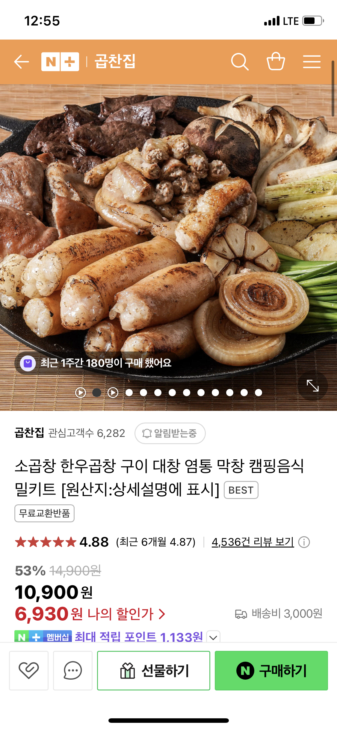 [네이버] 초벌 소곱창 200g + 특제 소스 30g (6930원/3만이상무배)