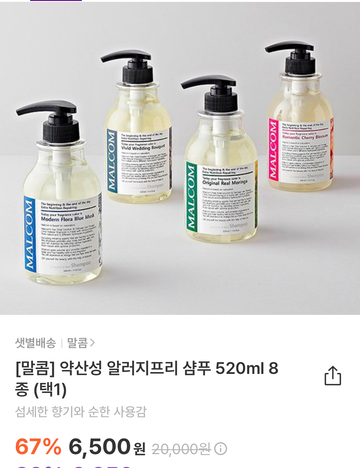 [컬리] 말콤 약산성 알러지프리 샴푸 520ml (6,500원/유배) > 국내핫딜