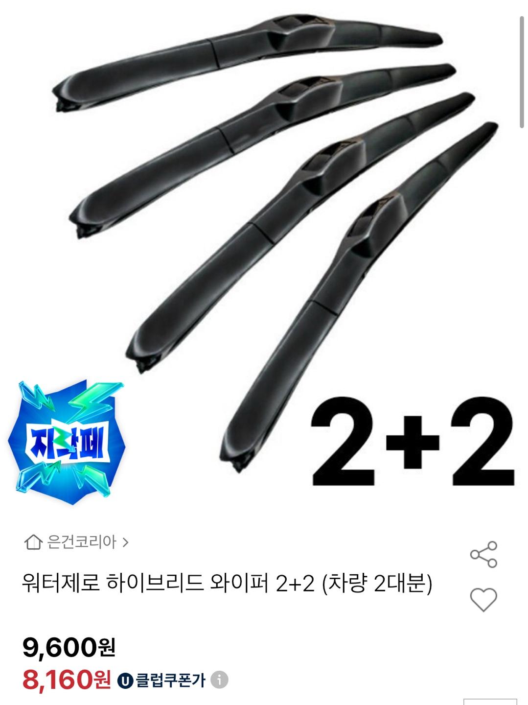 [옥션] 워터제로 하이브리드 와이퍼 2+2 유클 (8,160원/무료) > 국내핫딜
