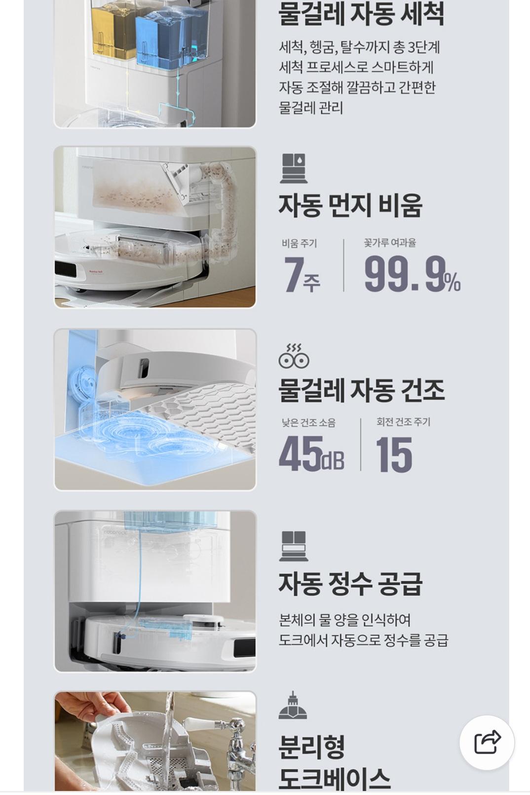 흡입력 10,000pa로 준프리미엄급인데 물걸레 리프팅, 자동세척,건조,먼지집진 다 들어가있습니다