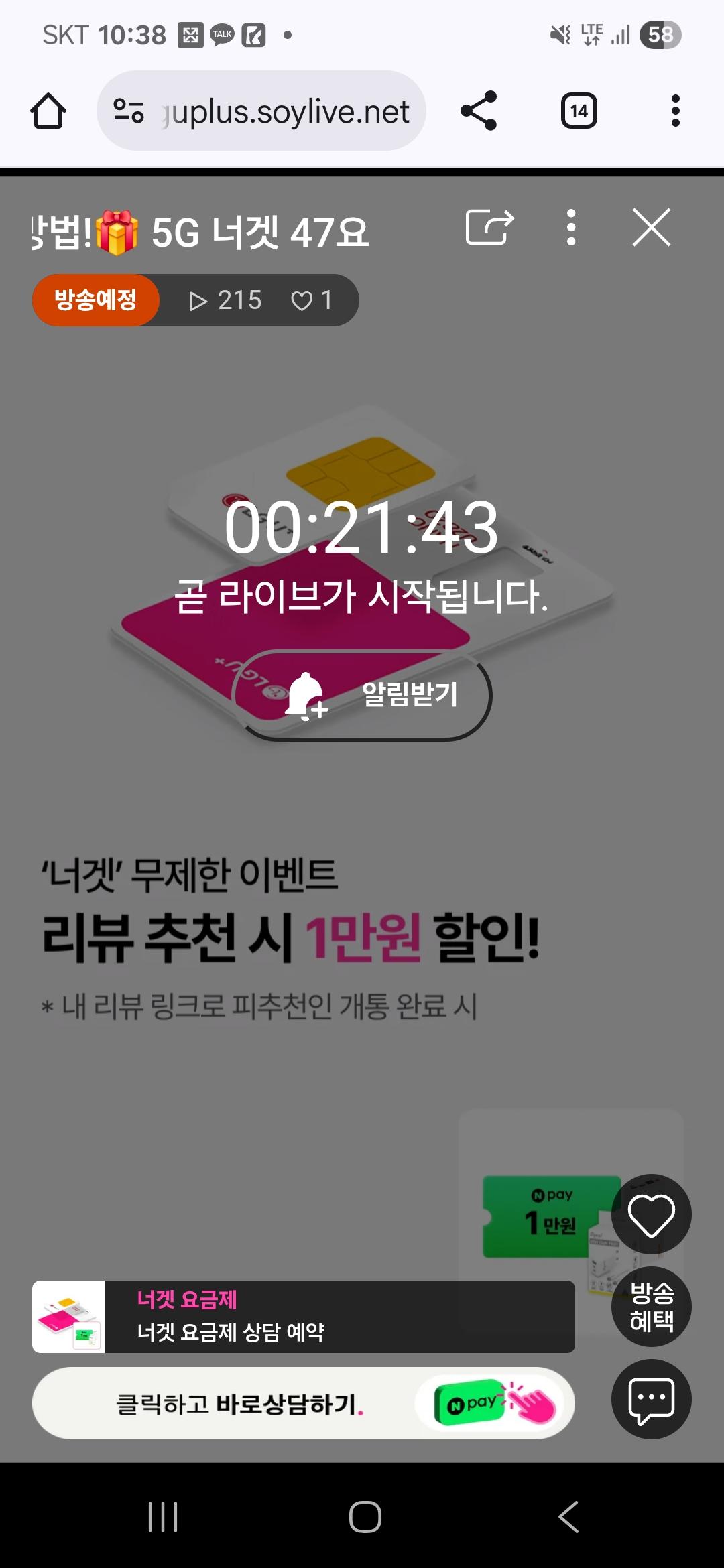 유플러스 너겟 라이브 하는데 47요금제 좋네요~