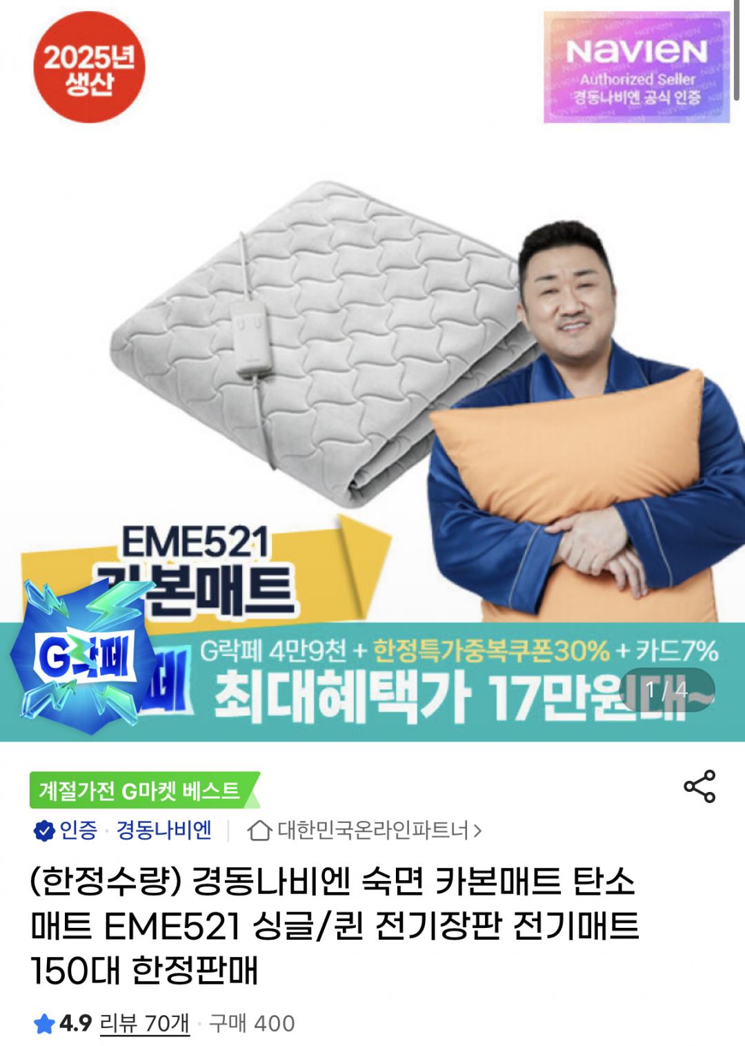 [지마켓] 경동나비엔 카본매트 EME521 (177,160원/무료)