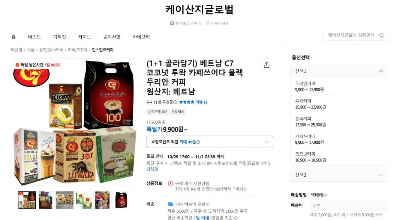 [카카오톡딜] 베트남 커피 1+1 골라담기 (9,900~/무료배송)