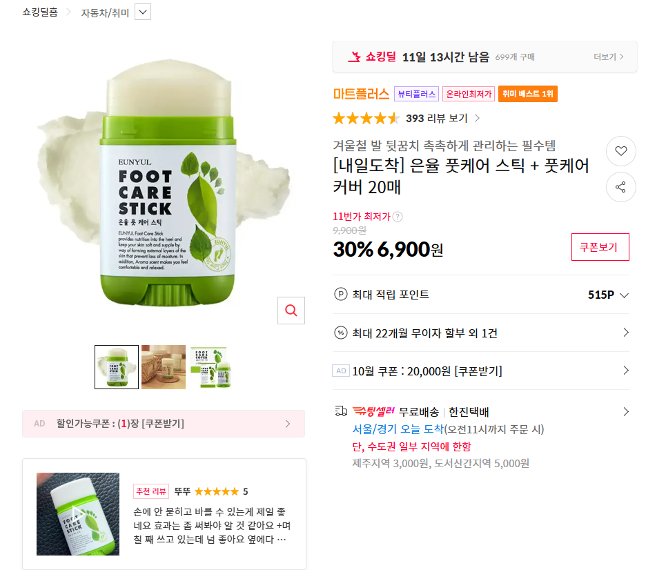 [11번가] 은율 풋케어 스틱 (6,900원 / 무료)