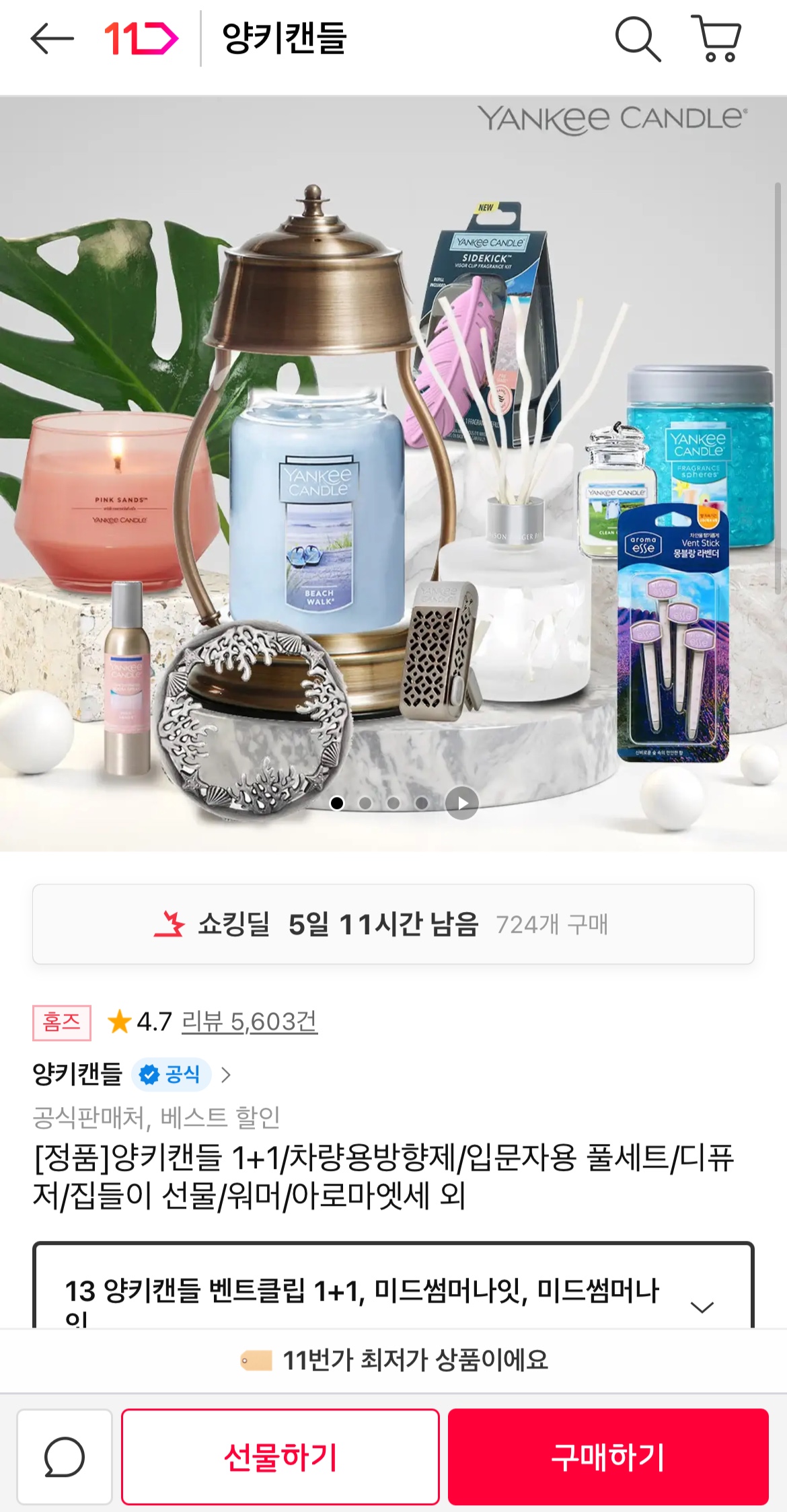 [11번가] 양키캔들 1+1 / 차량용방향제 / 입문자용 풀세트 외 (15,390원/무료)