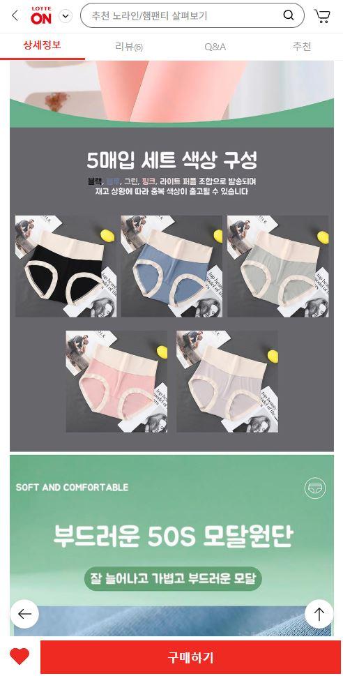 [롯데온] 뱃살 잡아주는 여자 모달 하이웨이스트 팬티 핫딜 5매입세트 (16,090/무료) > 국내핫딜