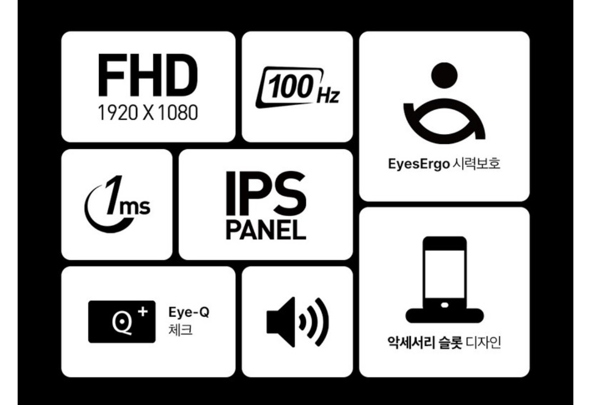 사무용인데도 상향된 100hz 주사율, 스피커 탑재, 악세 슬롯 다 있고