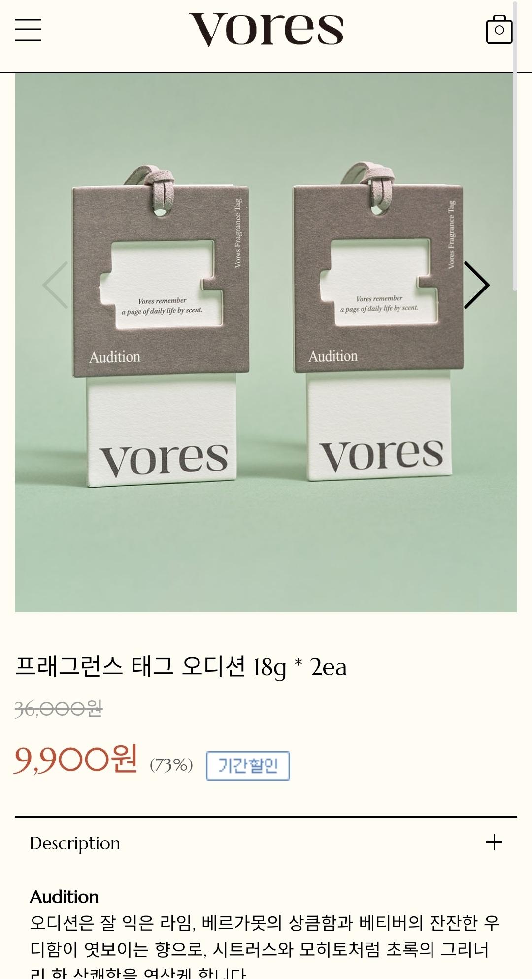 [공홈] VORES 프래그런스 태그 2개 (9900원/무배) > 국내핫딜