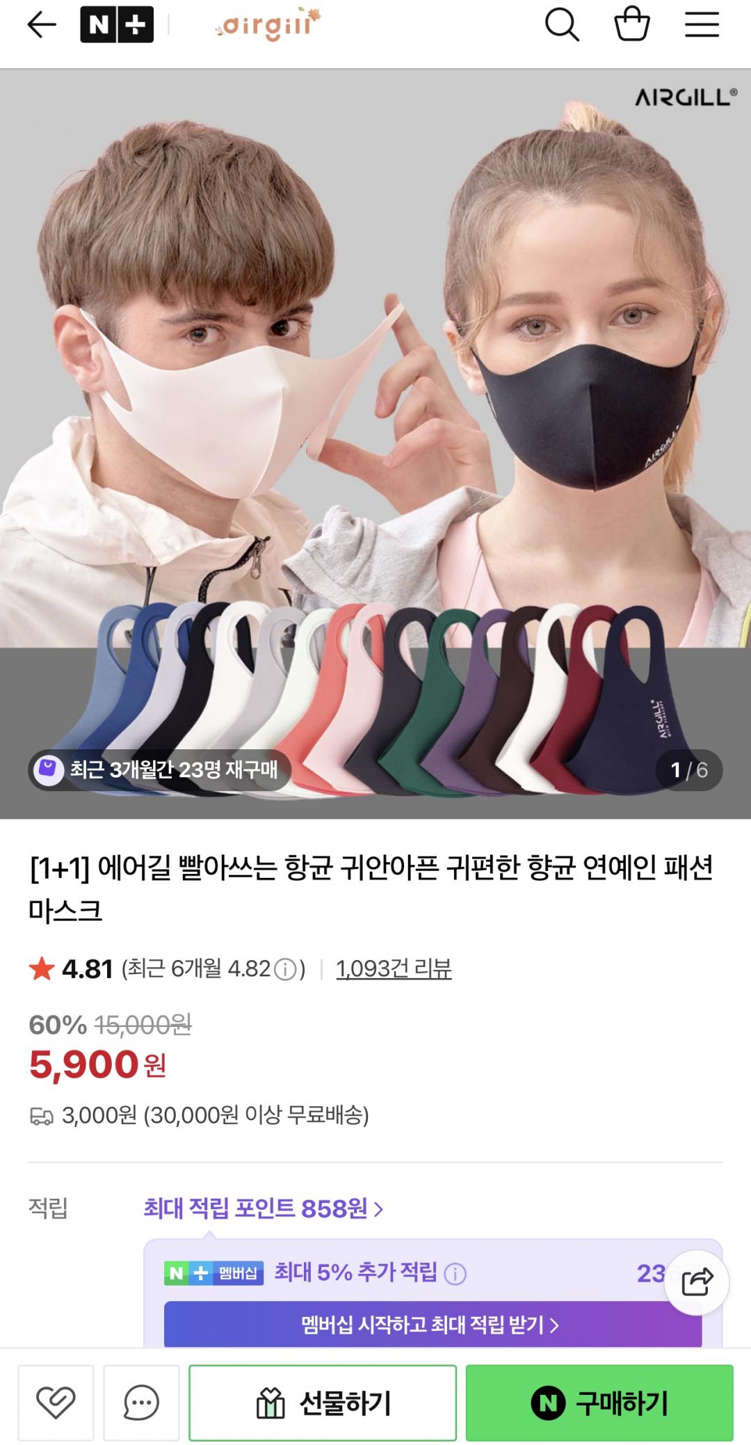[네이버] 에어길 빨아쓰는 패션 마스크 (5,900원/무료)
