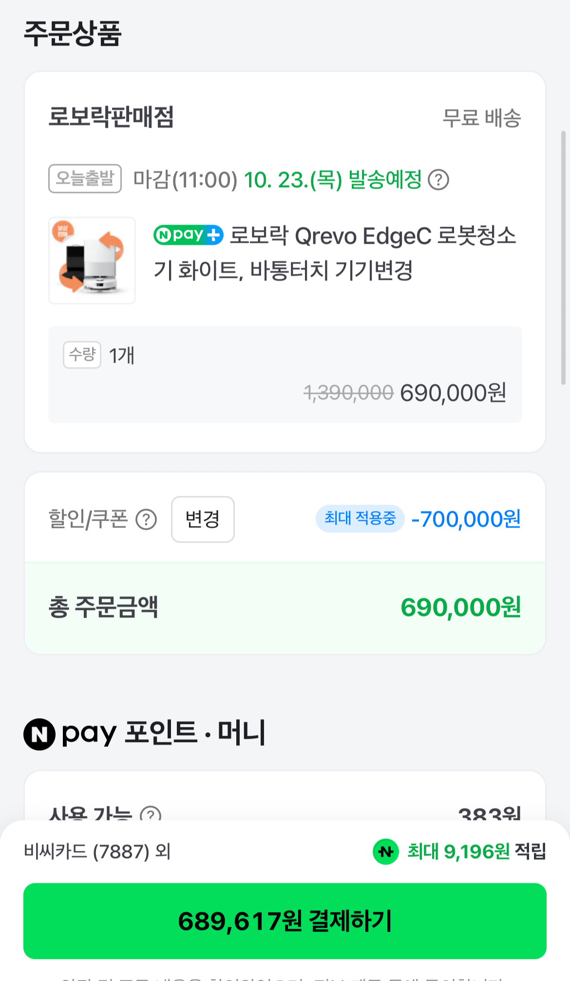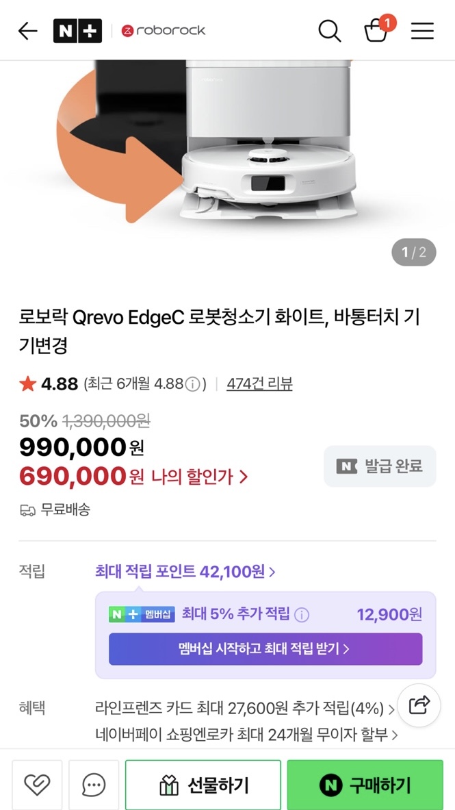 Qrevo EdgeC가 60만원대면 가격 상당히 싼데 거기에 버리는 비용도 따로 안 들고 포토리뷰랑 구매인증 사은품까지 받으면 소모품 살 일도 없어서 체감 상당히 저렴해집니다.