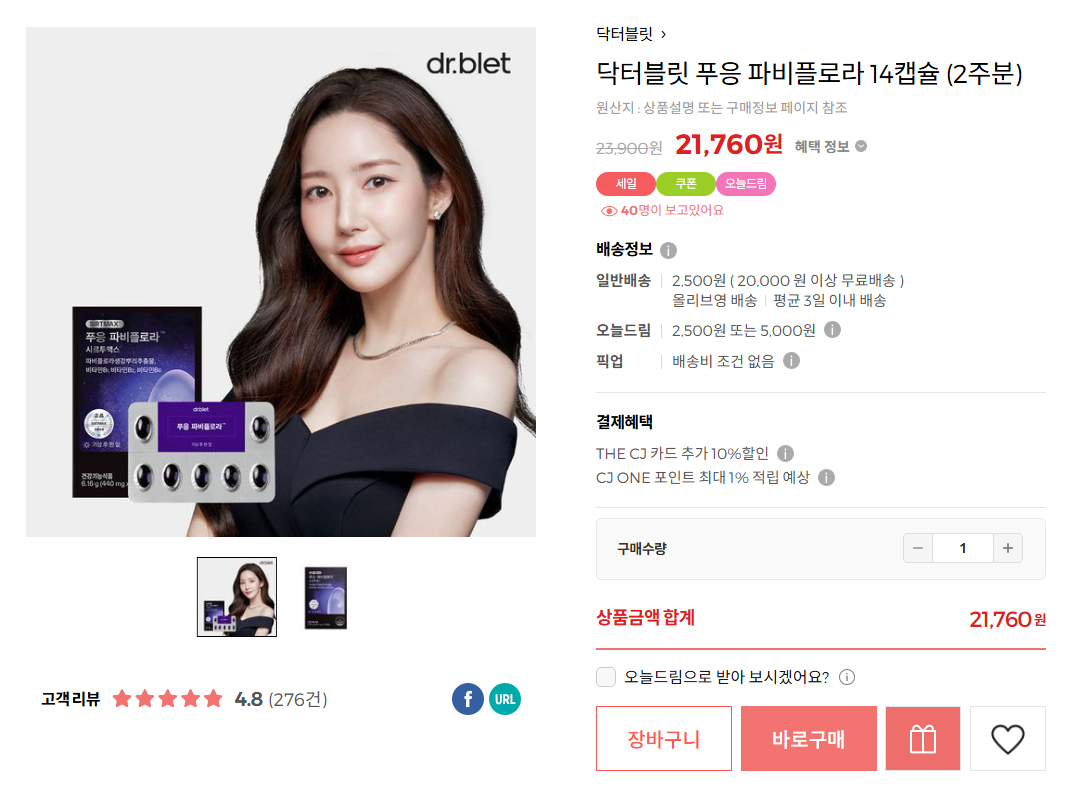 [올리브영] 닥터블릿 푸응 파비플로라 14캡슐 (21,760원 / 무료)