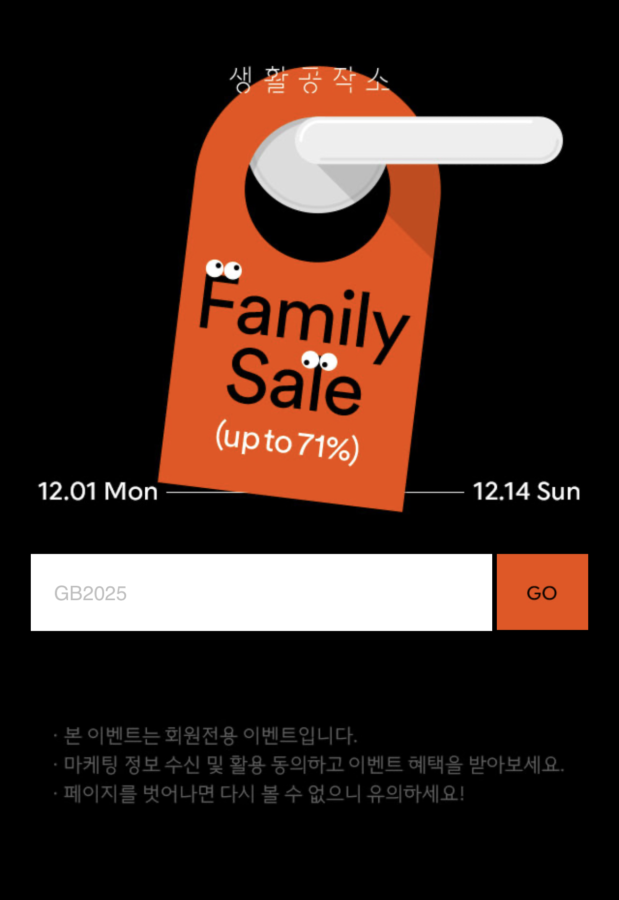 [자사몰] 생활공작소 페밀리세일 최대 71% (5,900원~/무료)