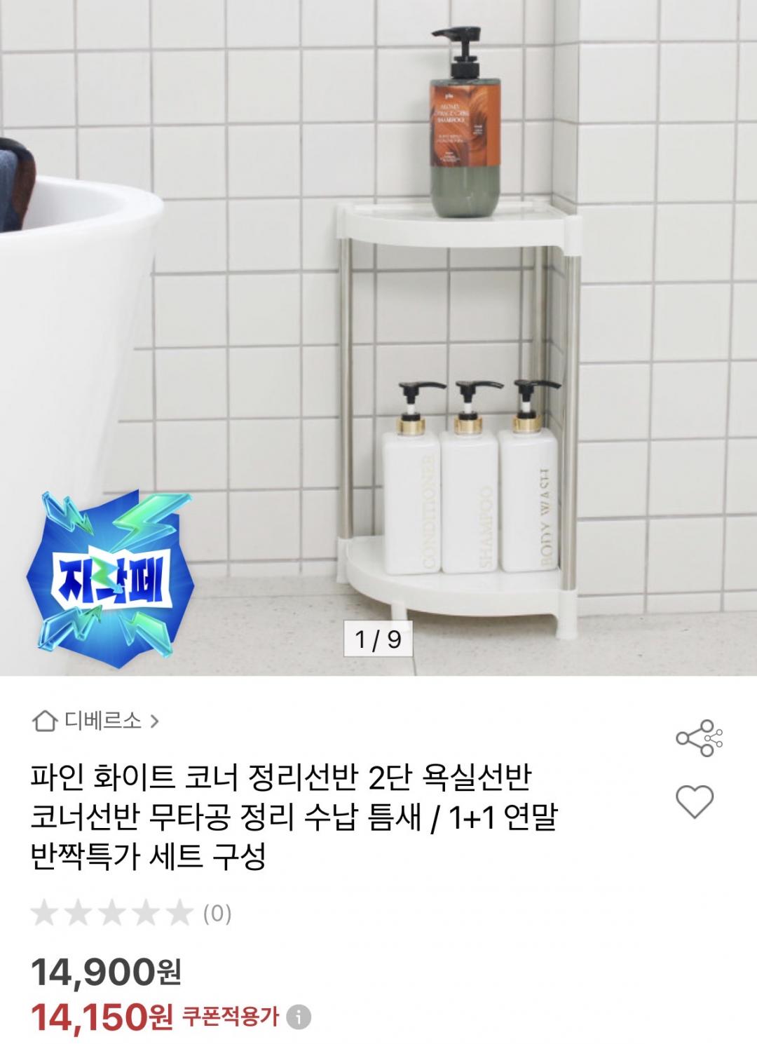 [옥션]무타공 코너 정리선반 2단 욕실선반 (14,150원/무배) > 국내핫딜