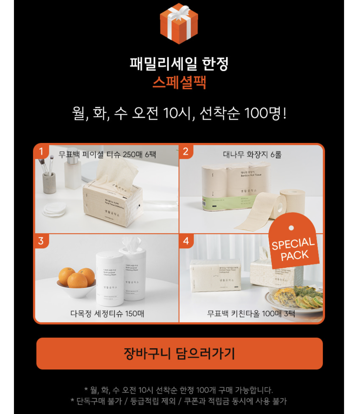 매일 오전 10시 선착순 100개 패키지 이벤트하고