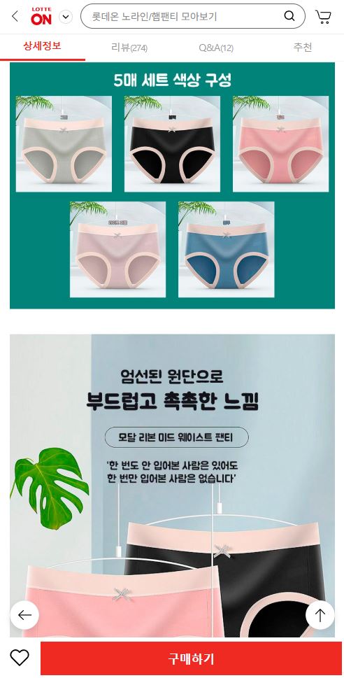 [롯데온] 편안한 심리스 모달 여자팬티 5매입 (9,650/무료) > 국내핫딜
