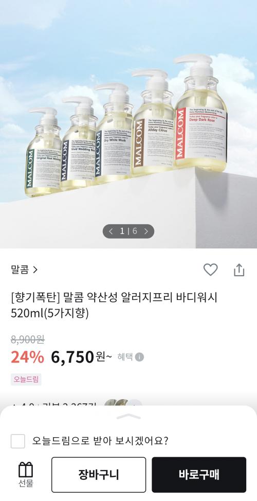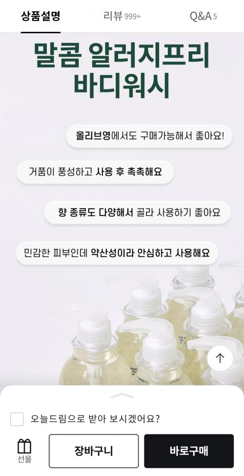 [올리브영]말콤 약산성 알러지프리 바디워시 520ml(6750원/유료) > 국내핫딜