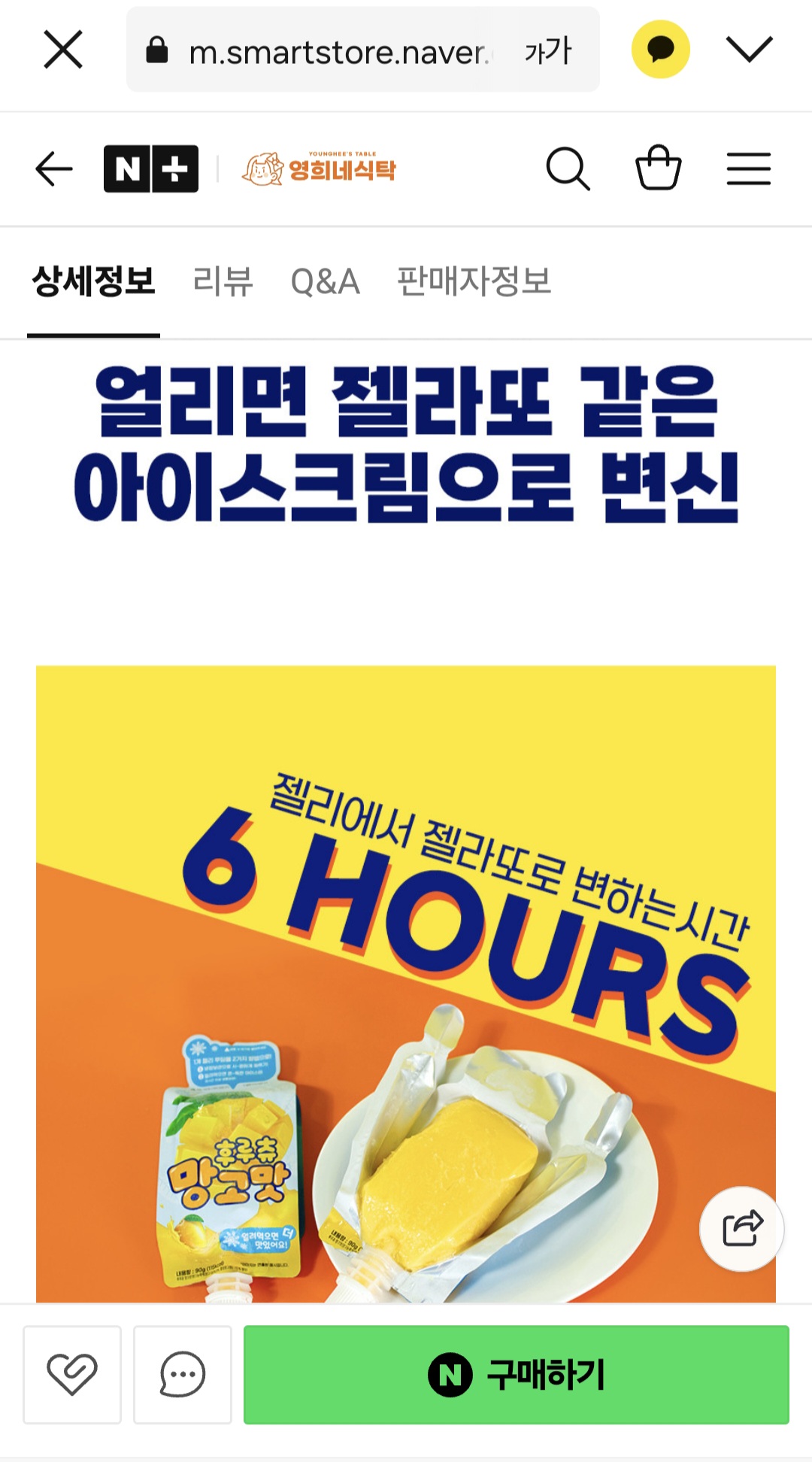 망고맛이랑 딸기맛 두가지 있는데 냉장고에 6시간만 넣어두면 젤리처럼 쫀뜩하고