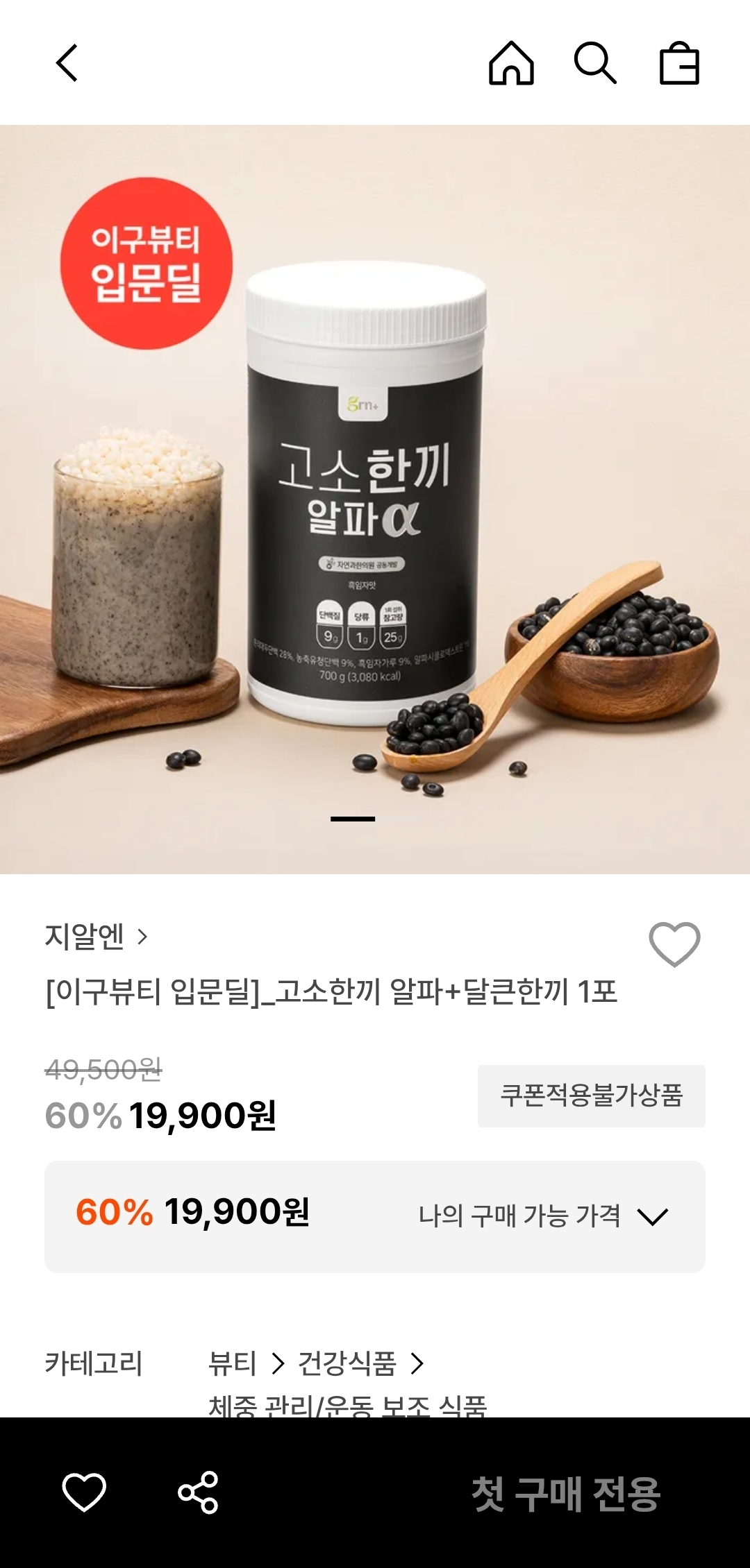 [29CM] 지알엔 고소한끼 알파+달큰한끼 1포 19,900원 댓글1개