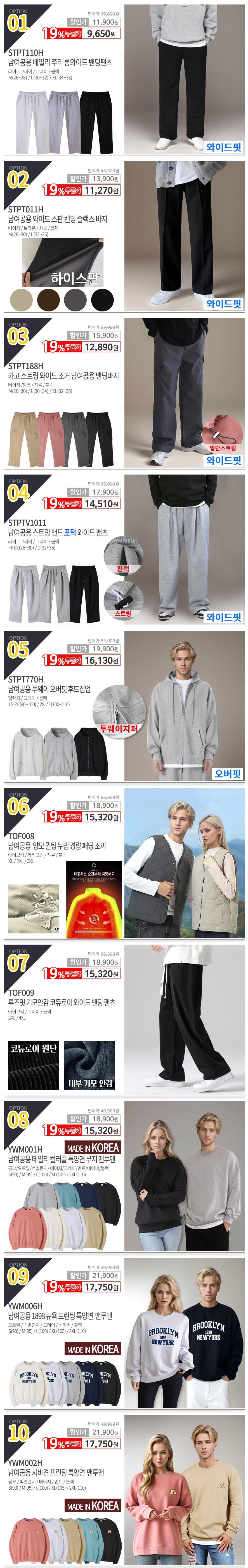 [지마켓] 신상 맨투맨/니트/후드/집업/슬랙스/면바지/청바지/와이드팬츠 등 (9,650원/무배) > 국내핫딜