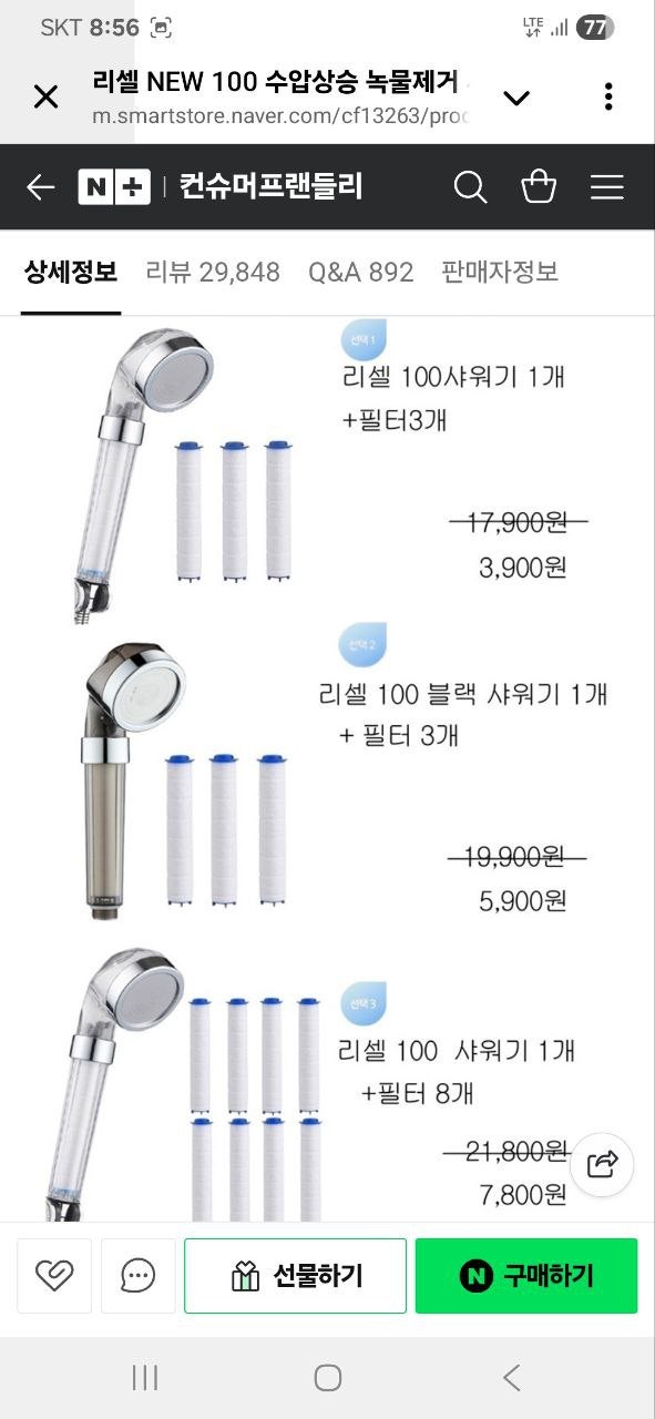 네이버) 리셀NEW 100 녹물제거 샤워기+필터3개 3,400원 무배