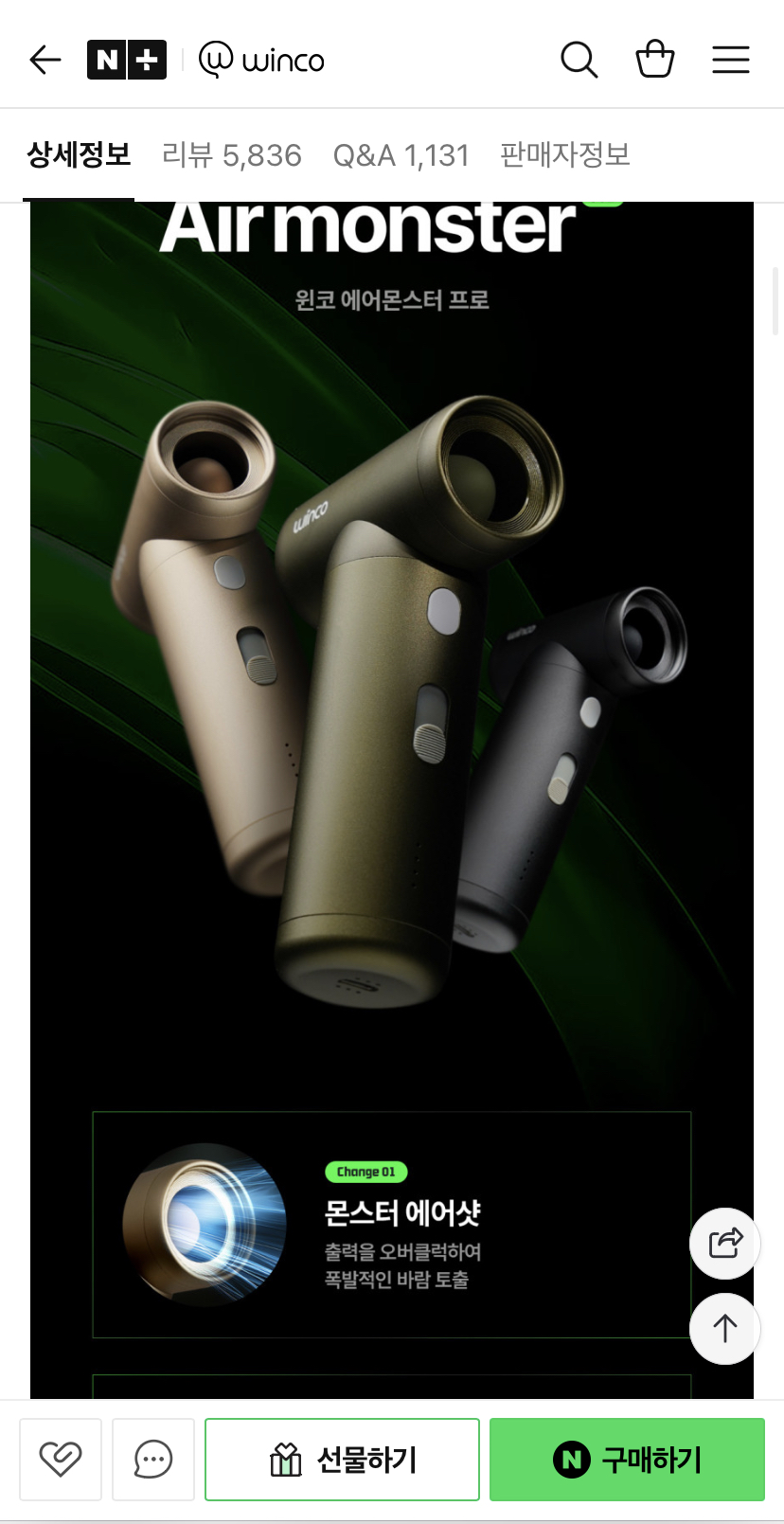 [네이버] 윈코 무선 에어건 프로/몬스터2/터보 (79,000원~/무료)