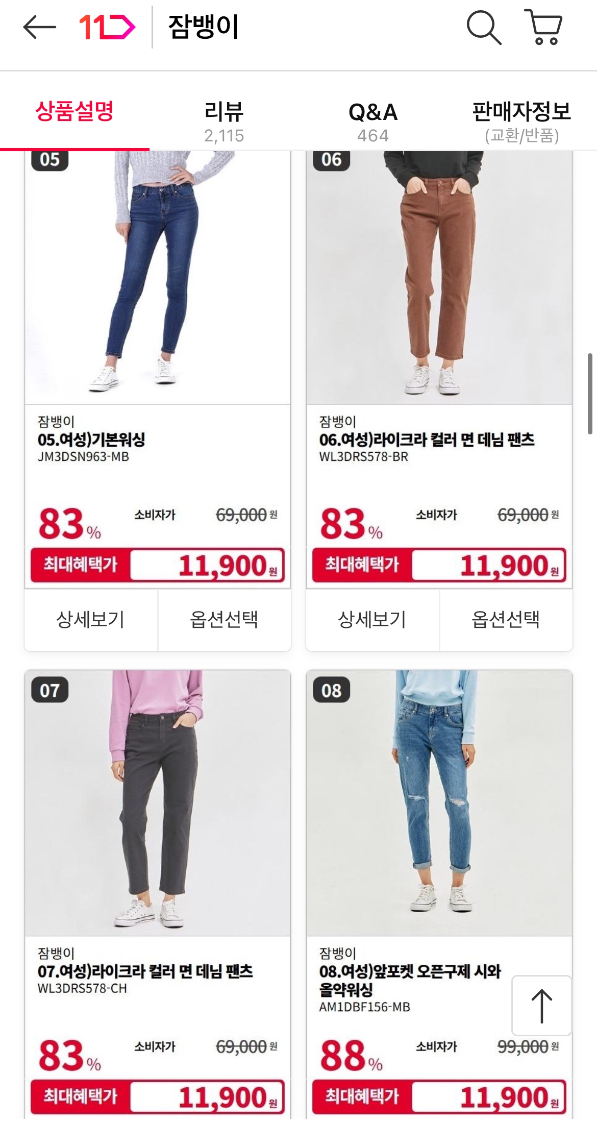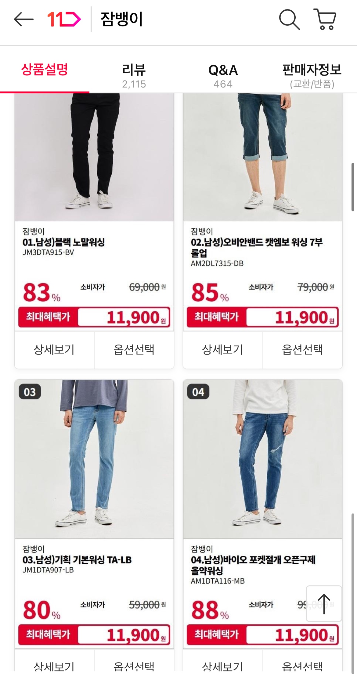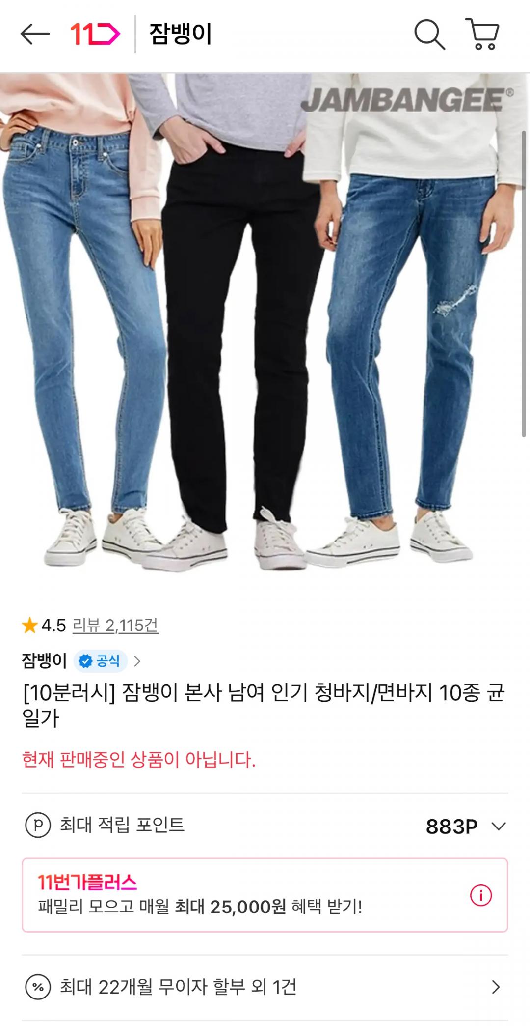 [11번가] 10분러시 잠뱅이 본사 남여 인기 청바지/면바지 10종 균일가 (11,900원/무료) > 국내핫딜