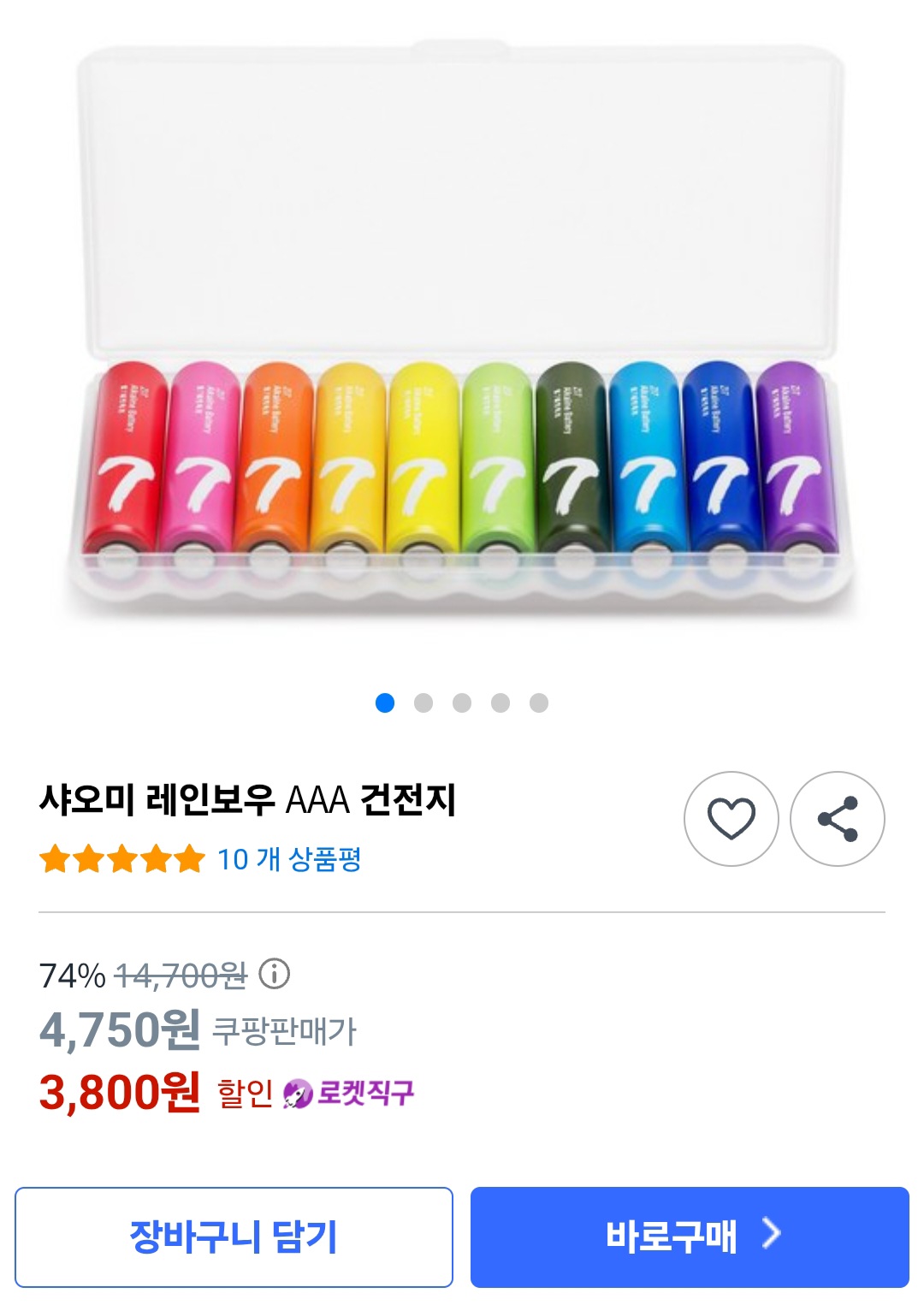 [쿠팡] 샤오미 레인보우 AAA 건전지 (3,800원/무배)