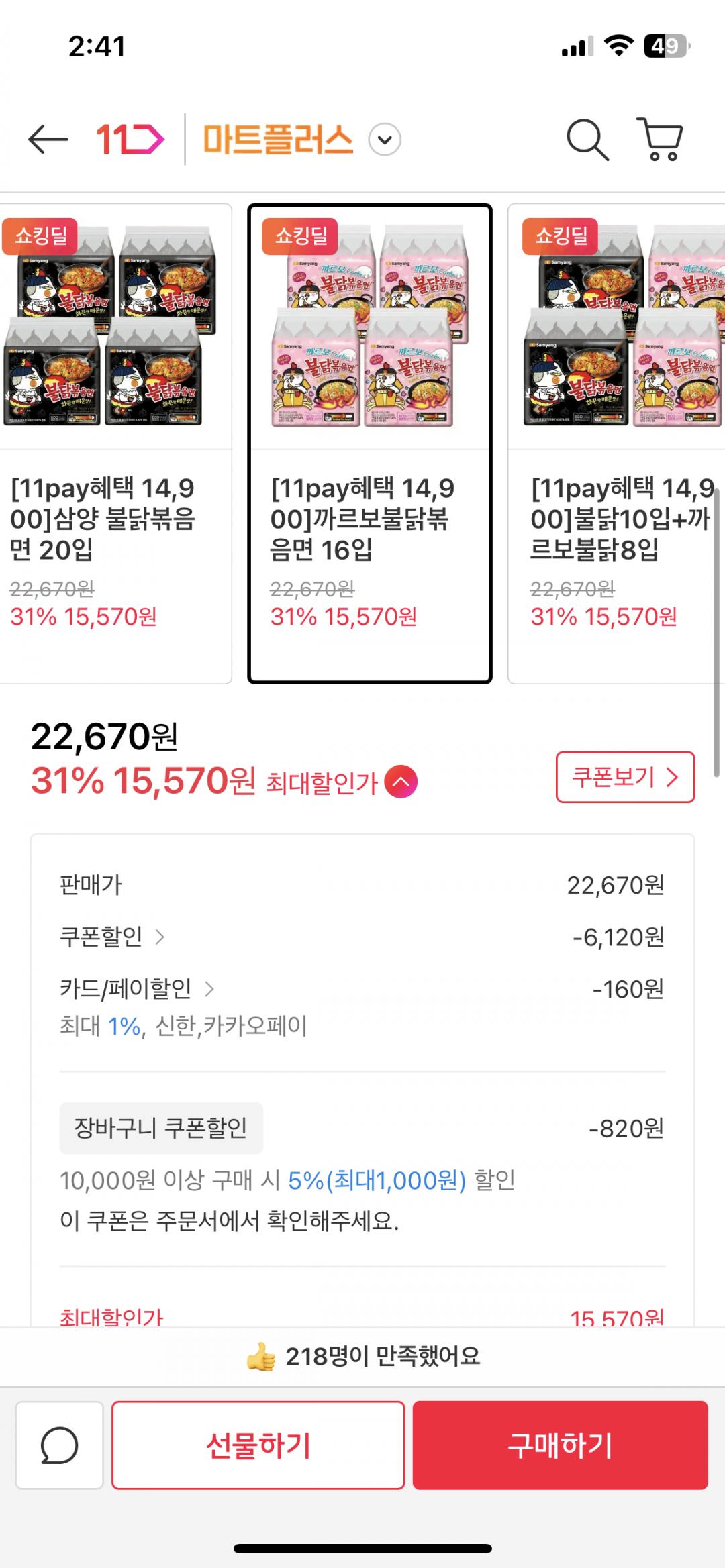 [11번가] 까르보 불닭볶음면 16입 (16,550원) (무료) > 국내핫딜