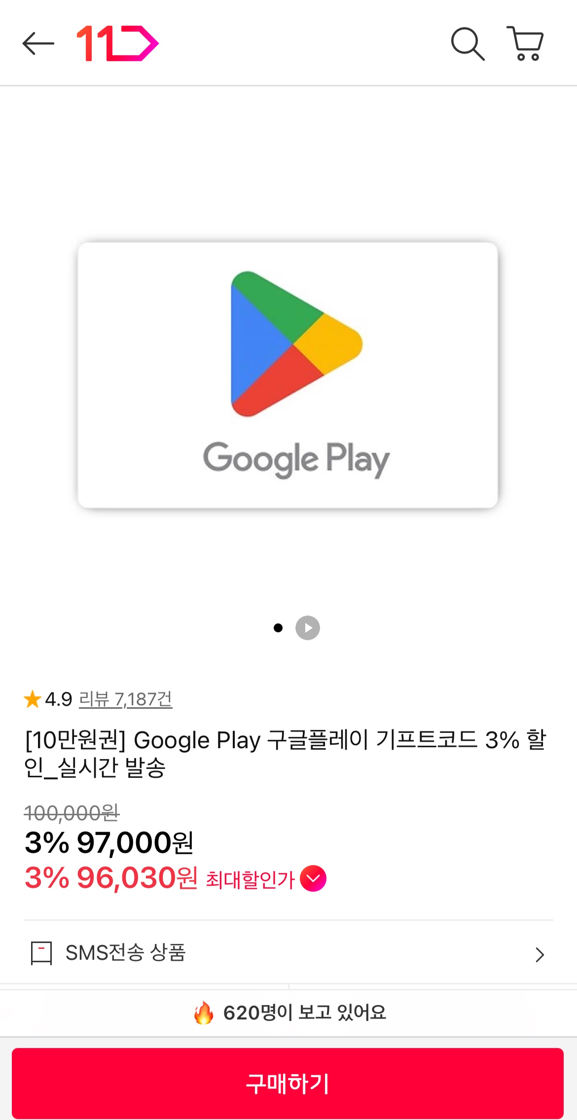 [11번가] 구글 기프트코드 10만원권 3% 할인 (97,000원/무료)