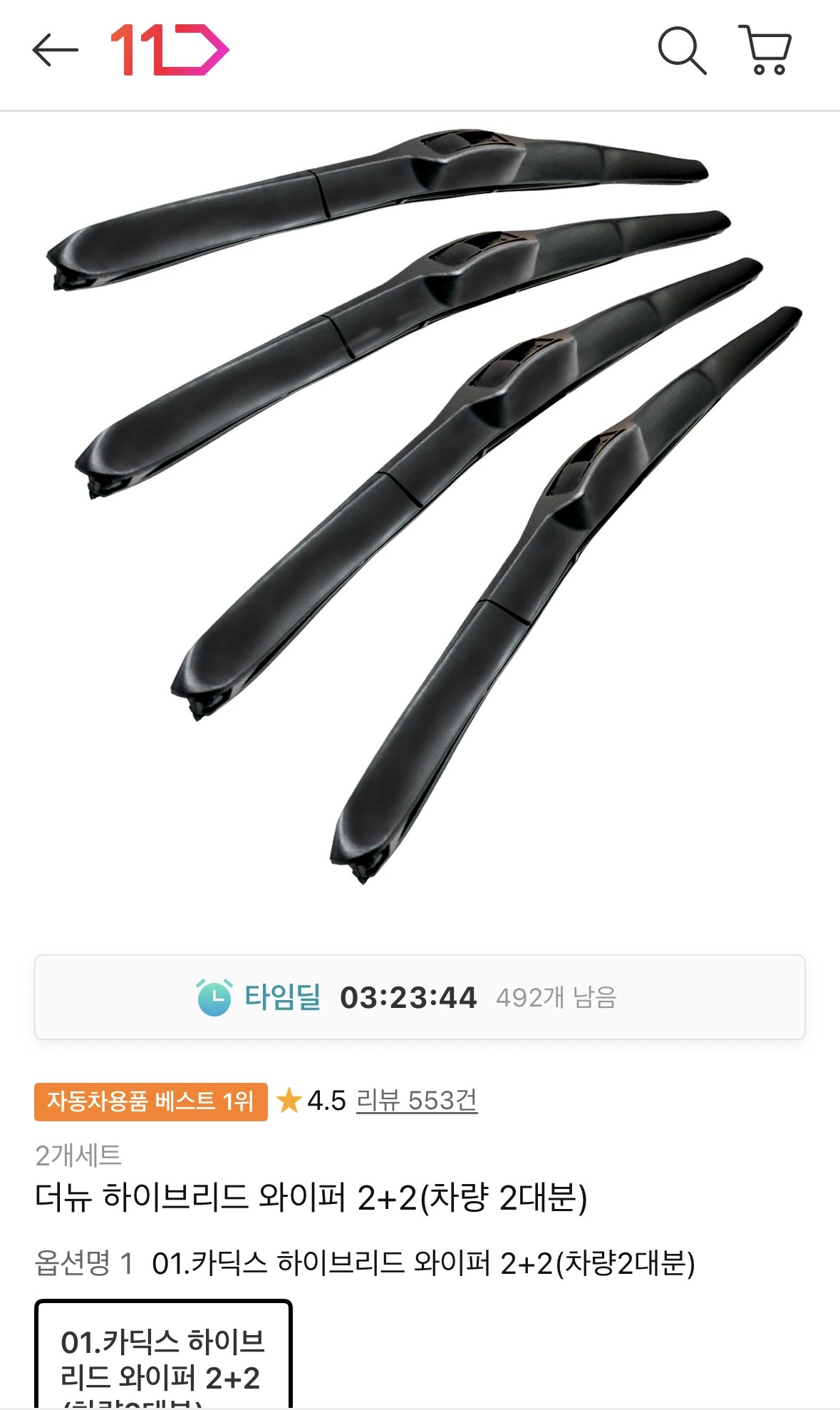 [11번가] 더뉴 하이브리드 와이퍼 2+2 (차량2대분) (8,900원/무료)