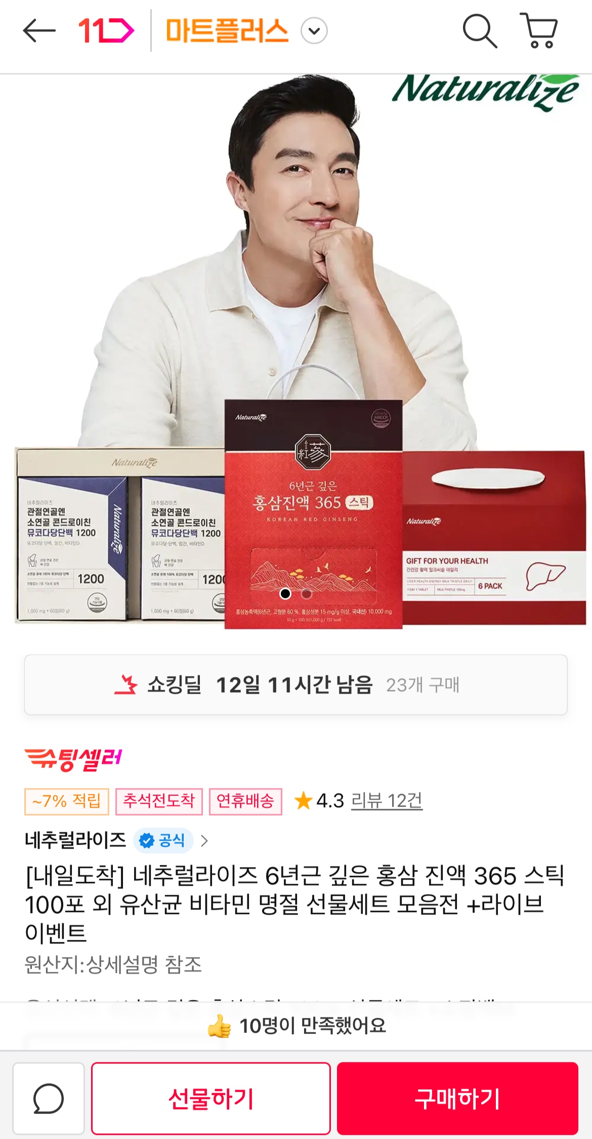 [11번가] 네추럴라이즈 6년근 깊은 홍삼 진액 365 스틱 100포 +쇼핑백 (29,900원/무료)