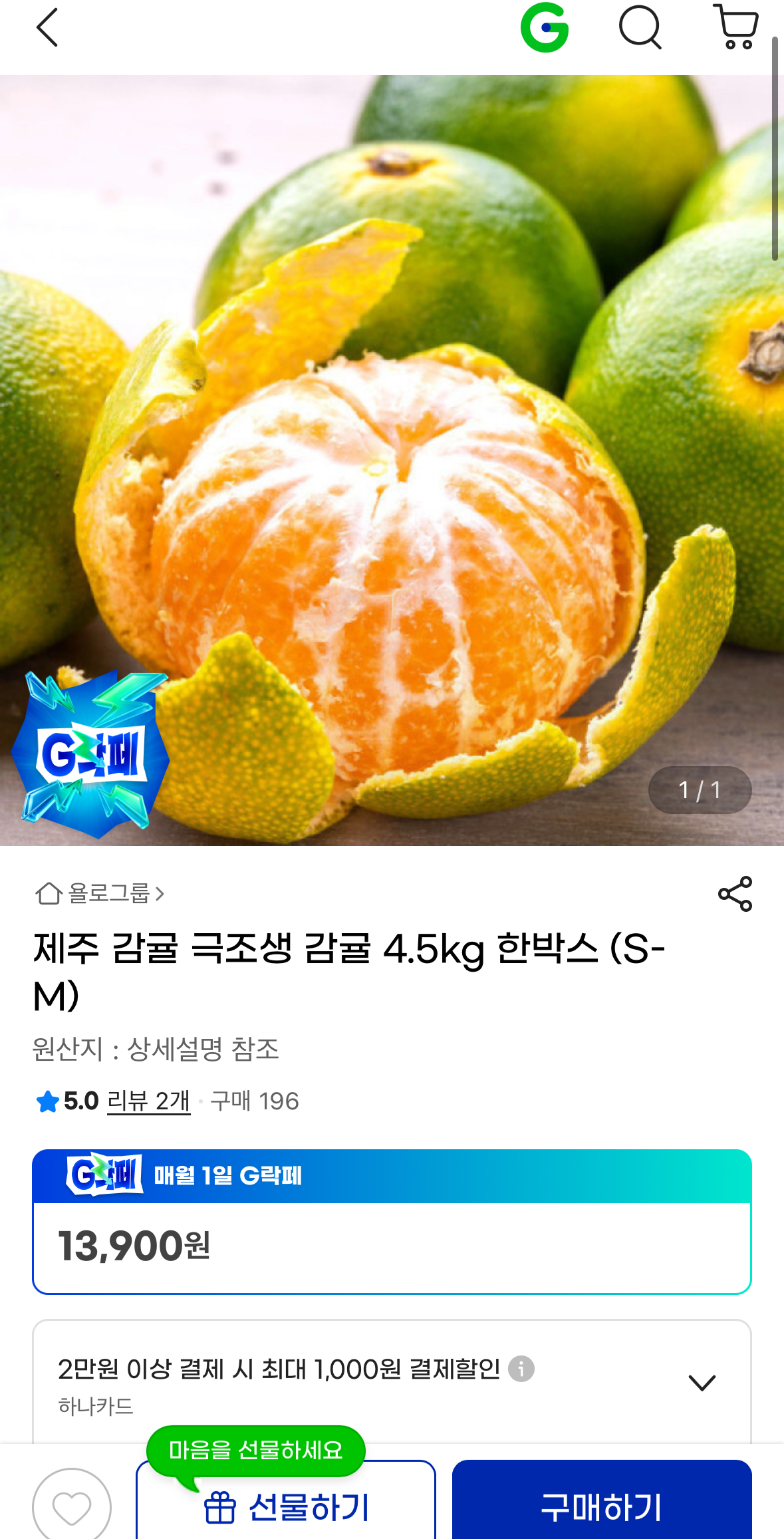 [지마켓] 제주 감귤 극조생 감귤 4.5kg 한박스 (S-M) (13,900원/무료)