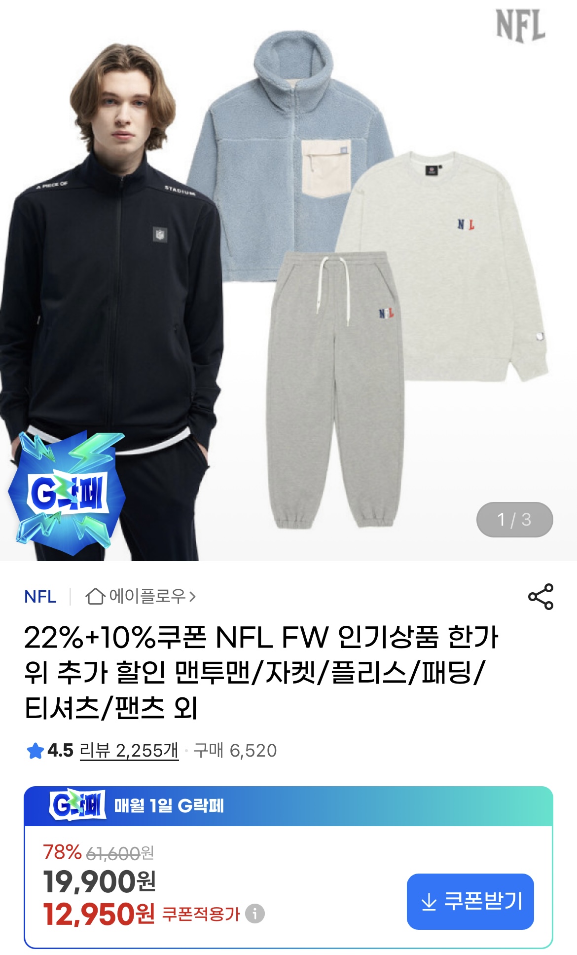 [지마켓] NFL 한가위 특가! 맨투맨/자켓/패딩 등등 (12950원/무배)