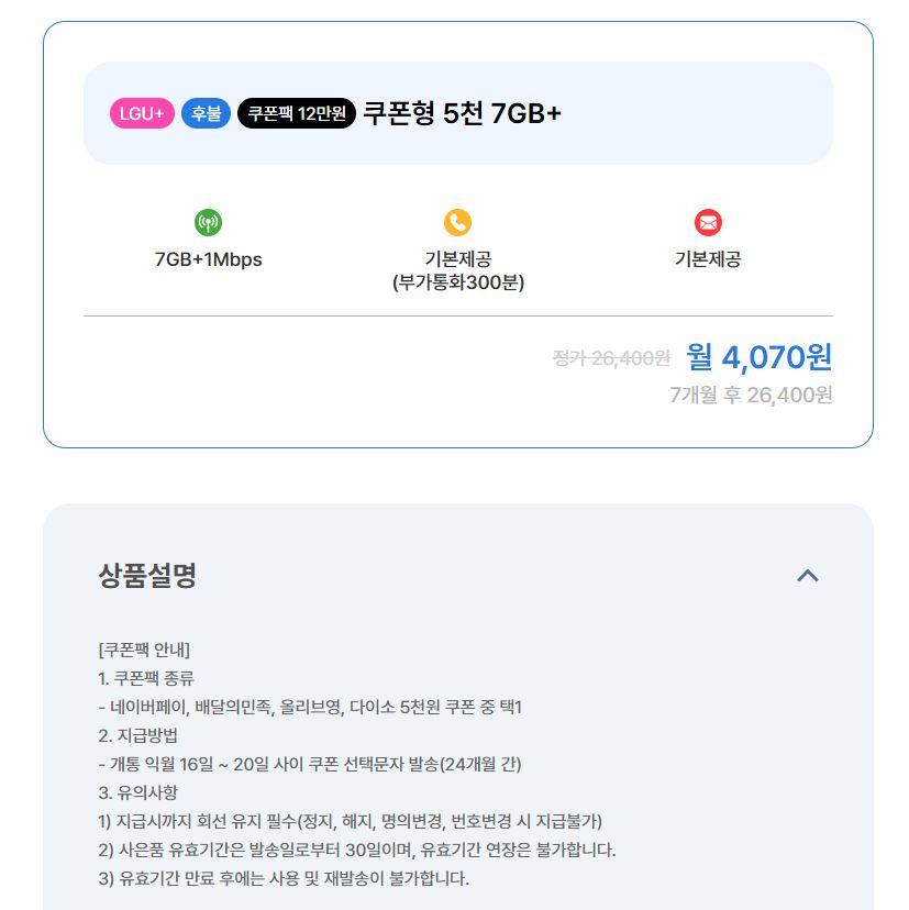 1. 쿠폰형 5천 7GB+ : https://asiamobile.kr/view/price/pricePlan_detail.aspx?gdcd=LPZ1006024