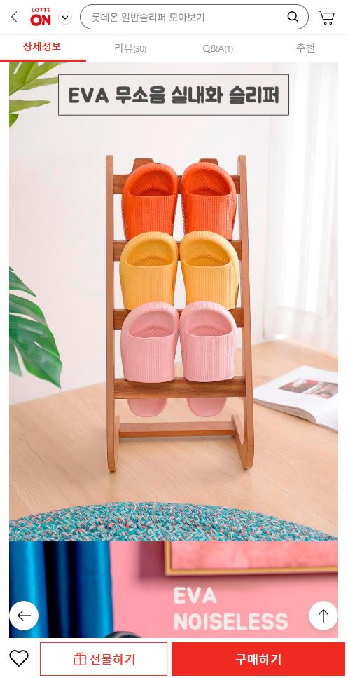 [롯데온] 1+1 층간소음 실내화 사무실 슬리퍼 (8,520/무료) > 국내핫딜