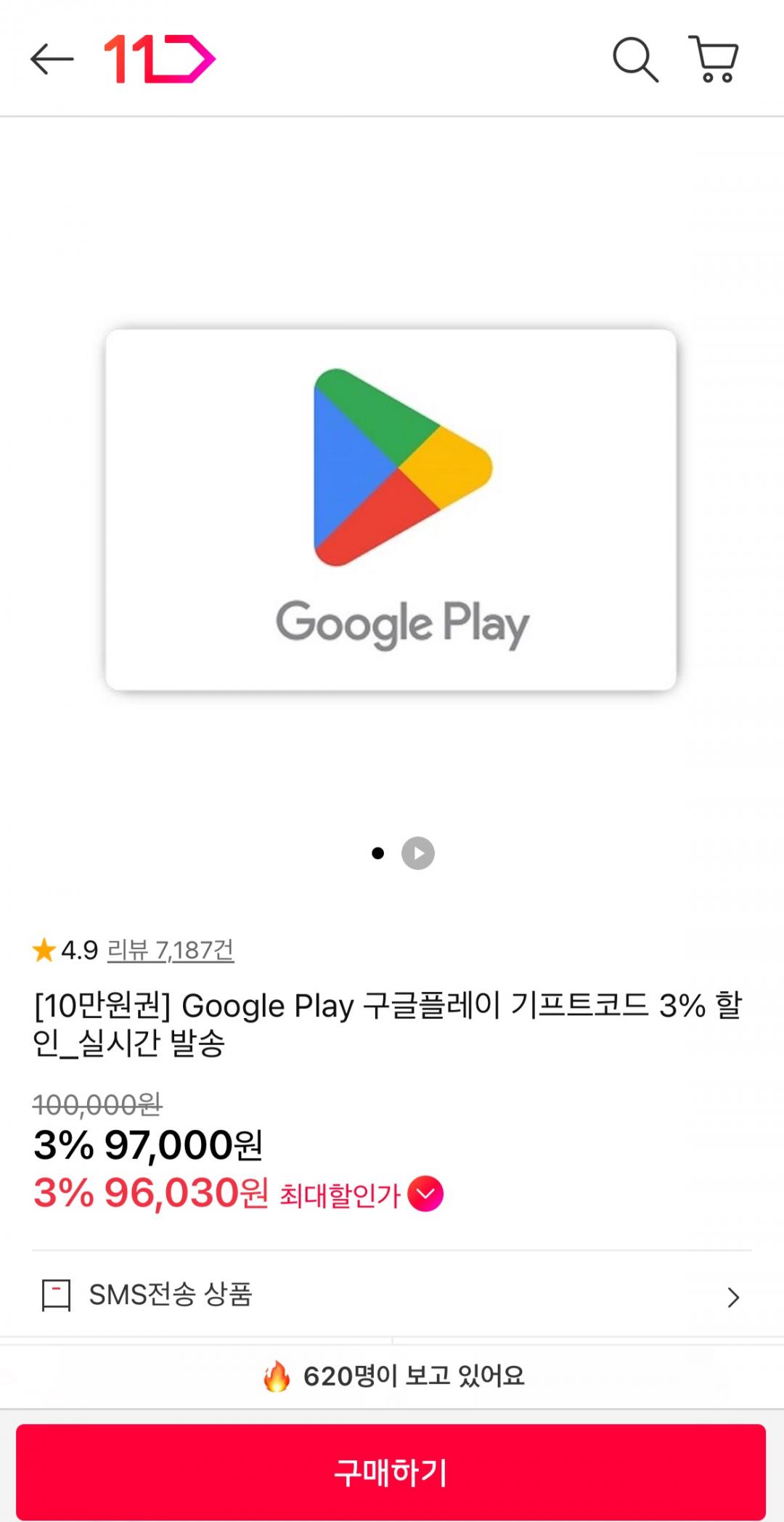 [11번가] 구글 기프트코드 10만원권 3% 할인 (97,000원/무료)