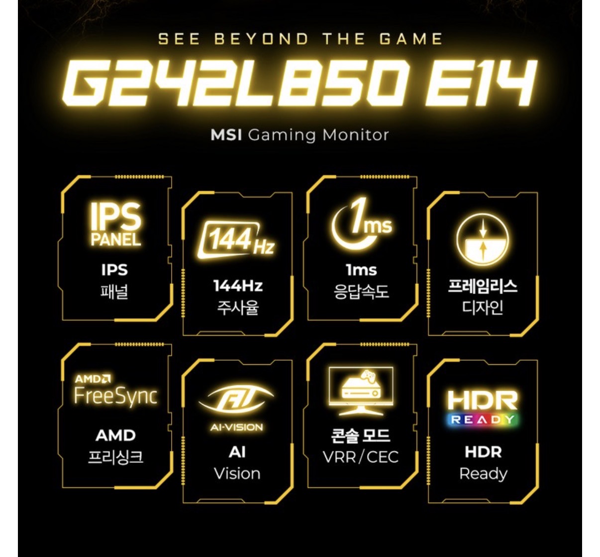 [쿠팡] MSI G242L850 E14 IPS 게이밍 144 HDR AI 무결점 (109,000원/무배)