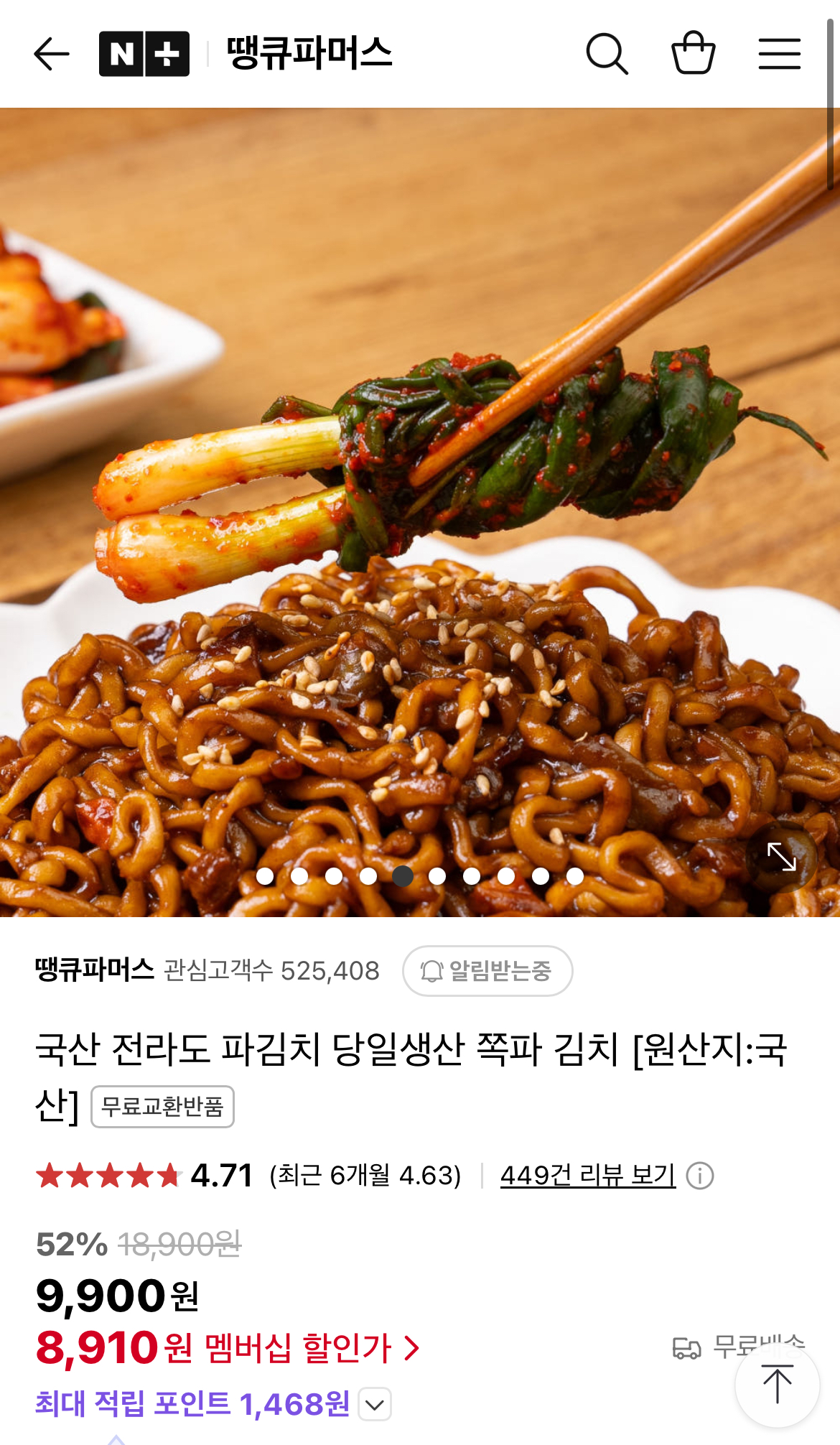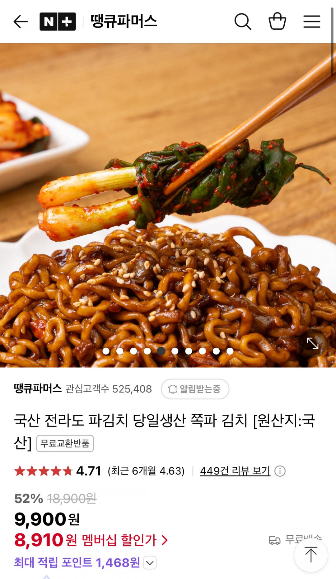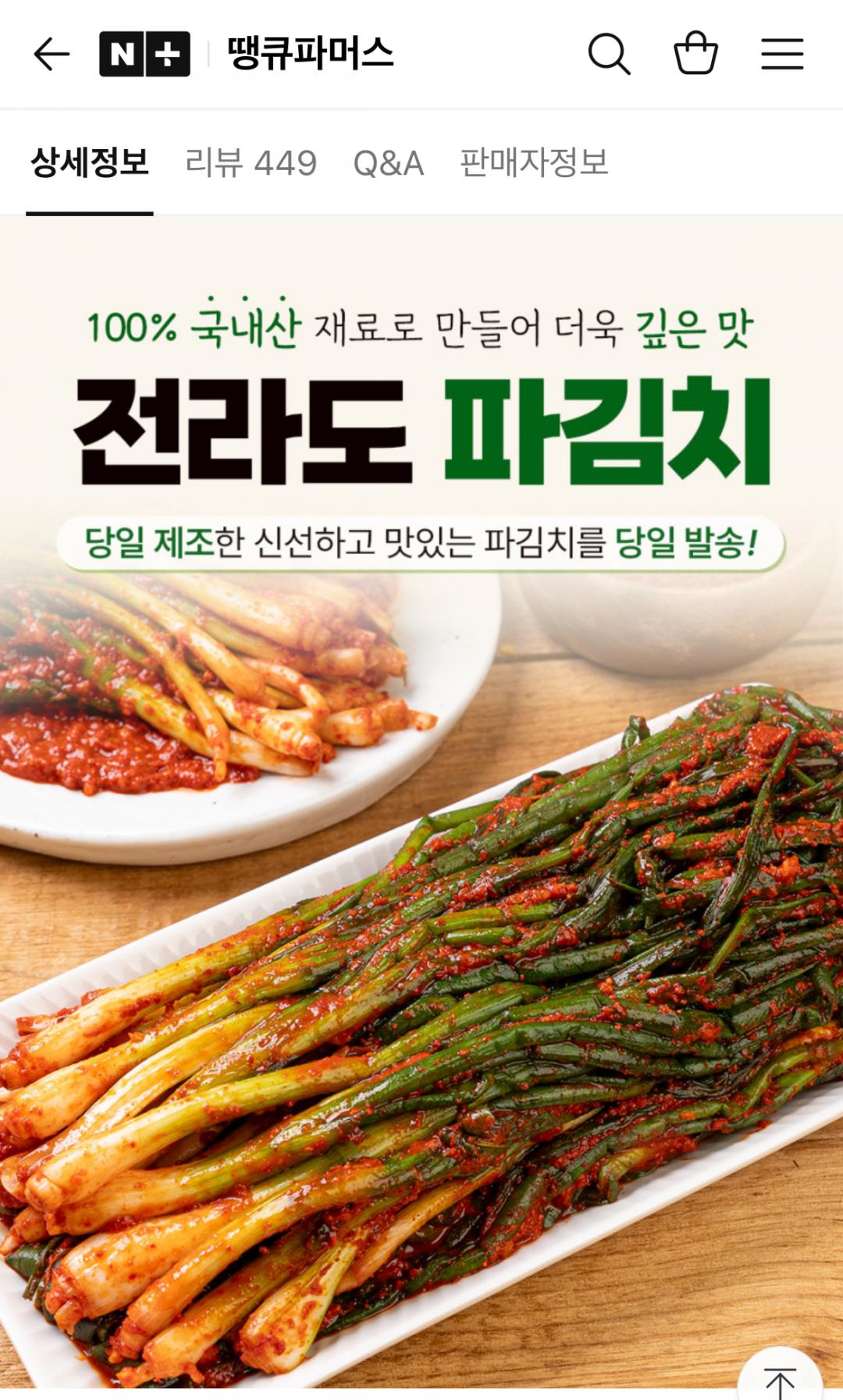 국내산 재료로 담근 전라도 파김치 1kg에 8,410원이요