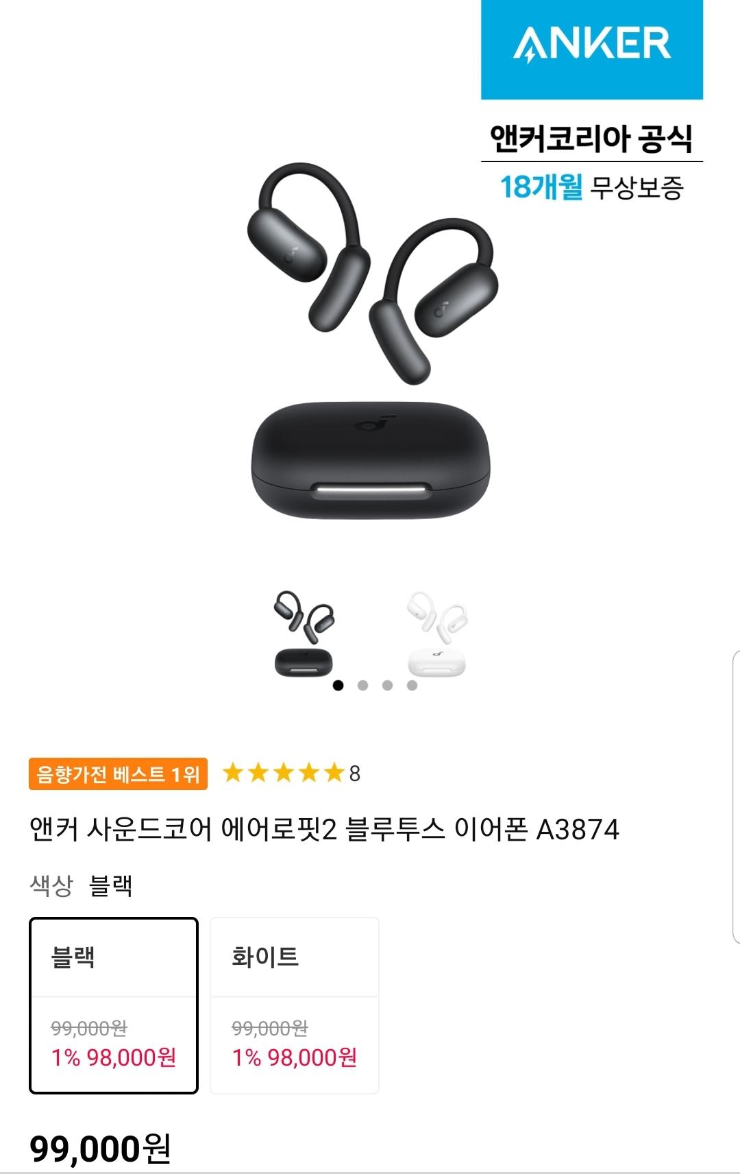 [11번가] 앤커 사운드코어 에어로핏2 블루투스 이어폰 A3874 (99,000원/무료) > 국내핫딜