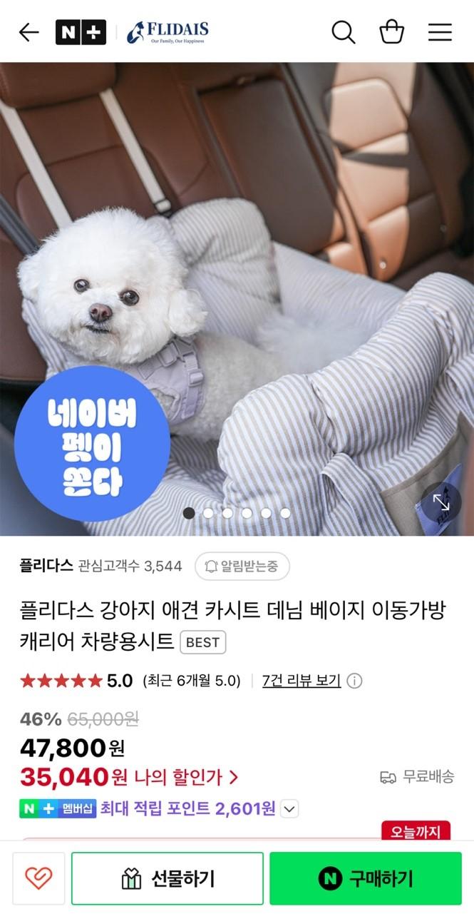 애견 카시트가 펫특가챌린지라 네이버에서 35,040원이네요