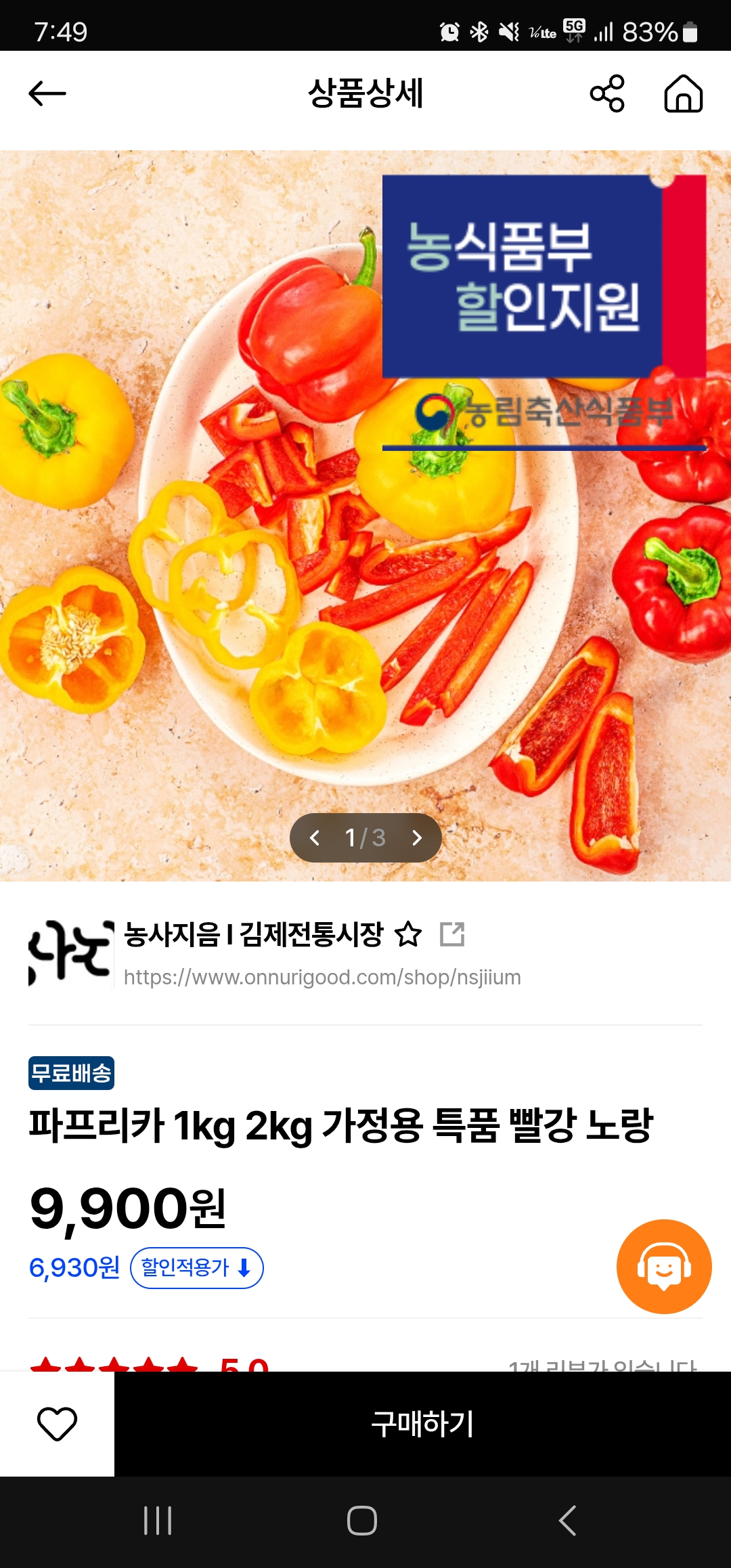 [온누리굿데이] 가정용 파프리카 1kg 6,930원 무배 > 국내핫딜