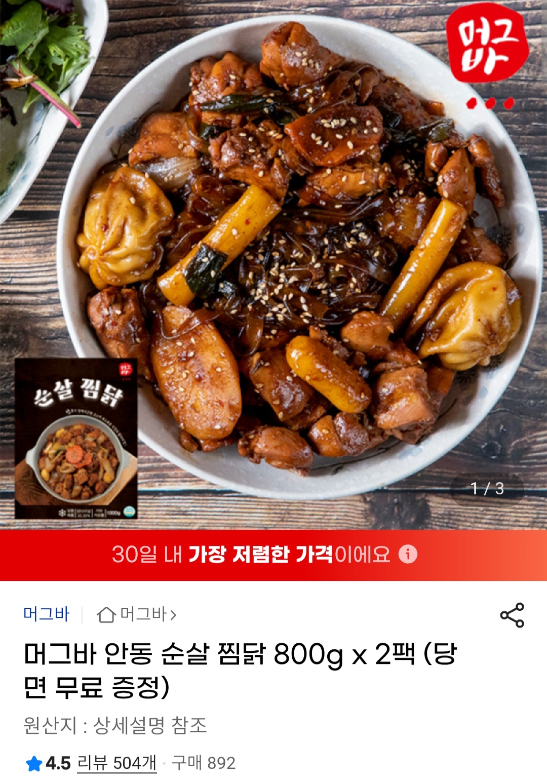 [G마켓] 머그바 안동 순살 찜닭 800g 2팩 (13,370원 / 무료배송) > 국내핫딜