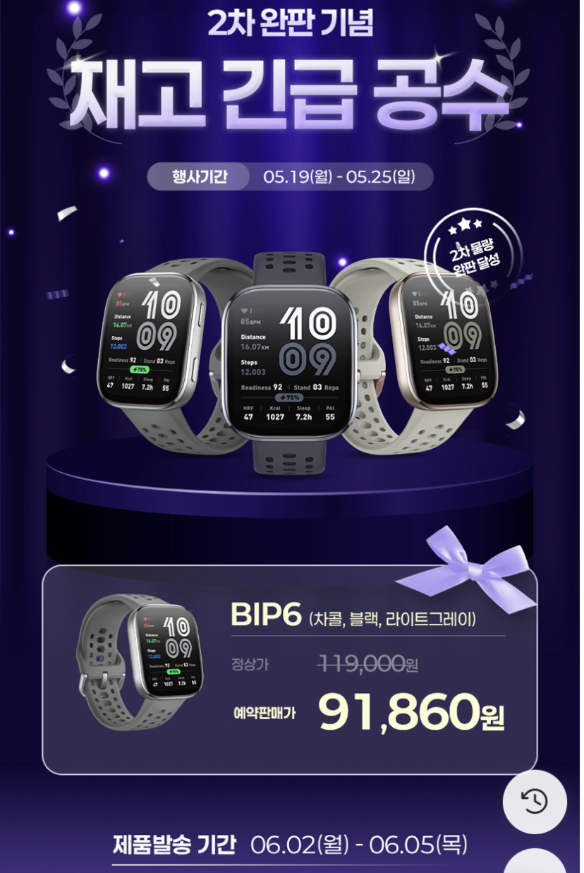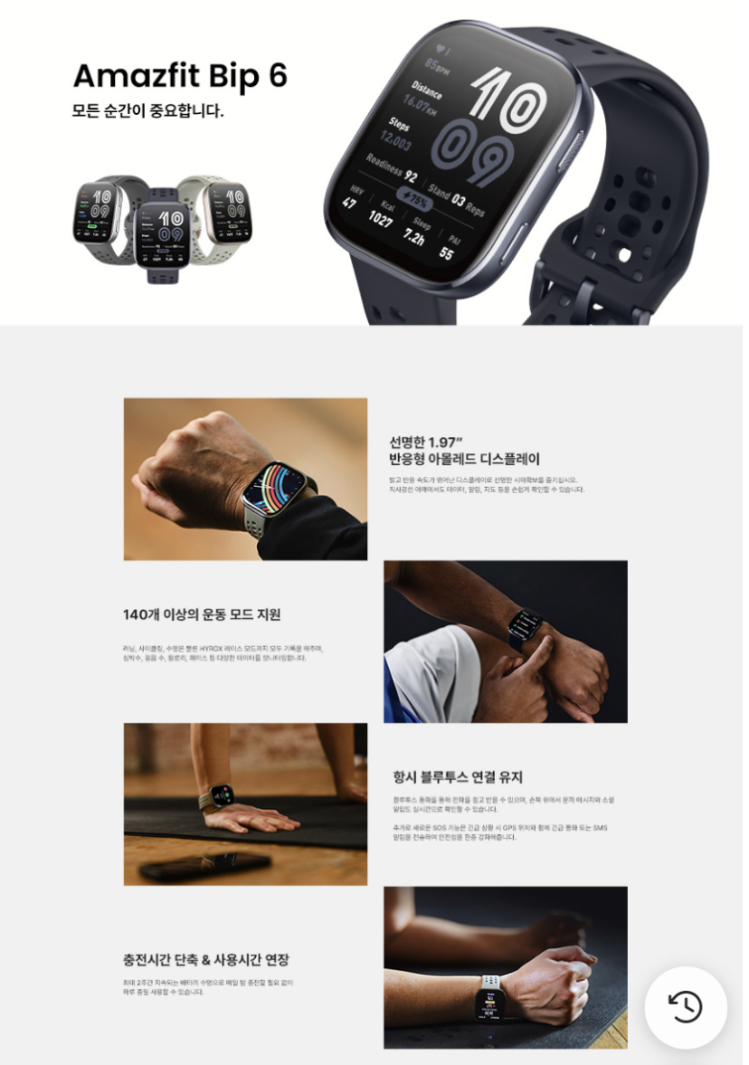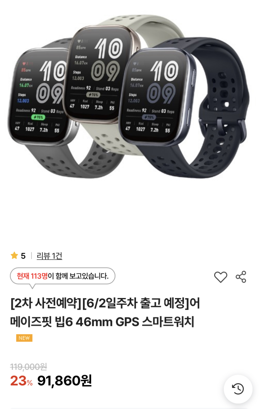 [공홈] 어메이즈핏 빕6 46mm GPS 스마트워치 사전예약(91,860원/무료) > 국내핫딜