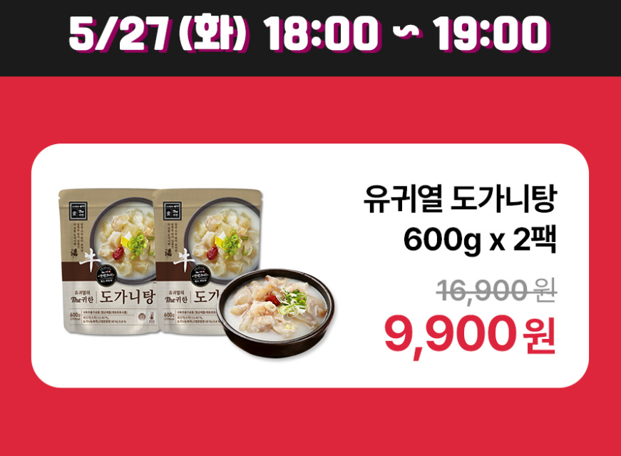 [11번가] 60분러시 유귀열의 The귀한 도가니탕 600g x 2팩 (9,900원 / 무료) > 국내핫딜