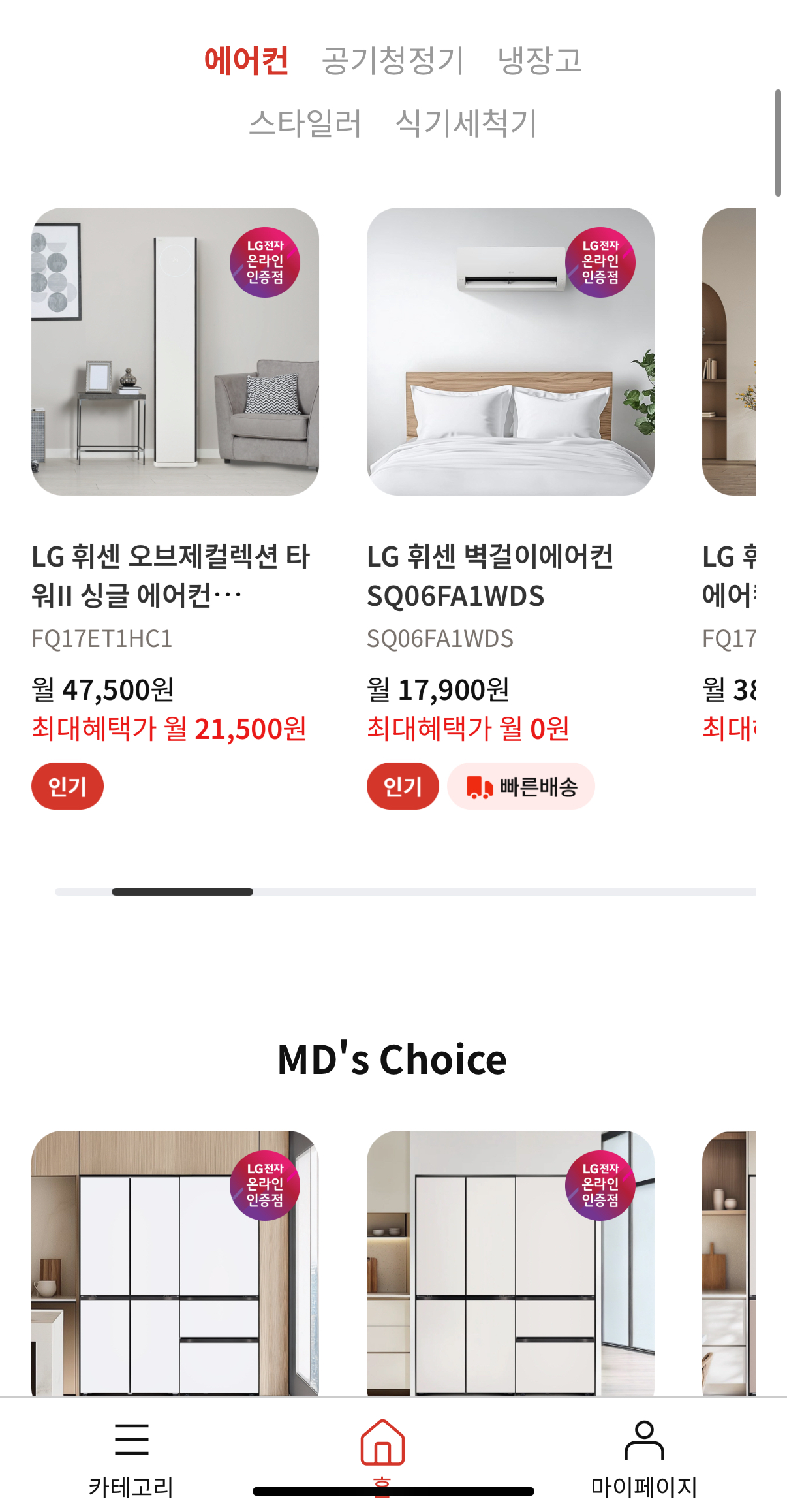 LG 휘센 타워형 월 3-5만원대로 구독해서 사용할 수 있대서 관심있게 보고 있습니다