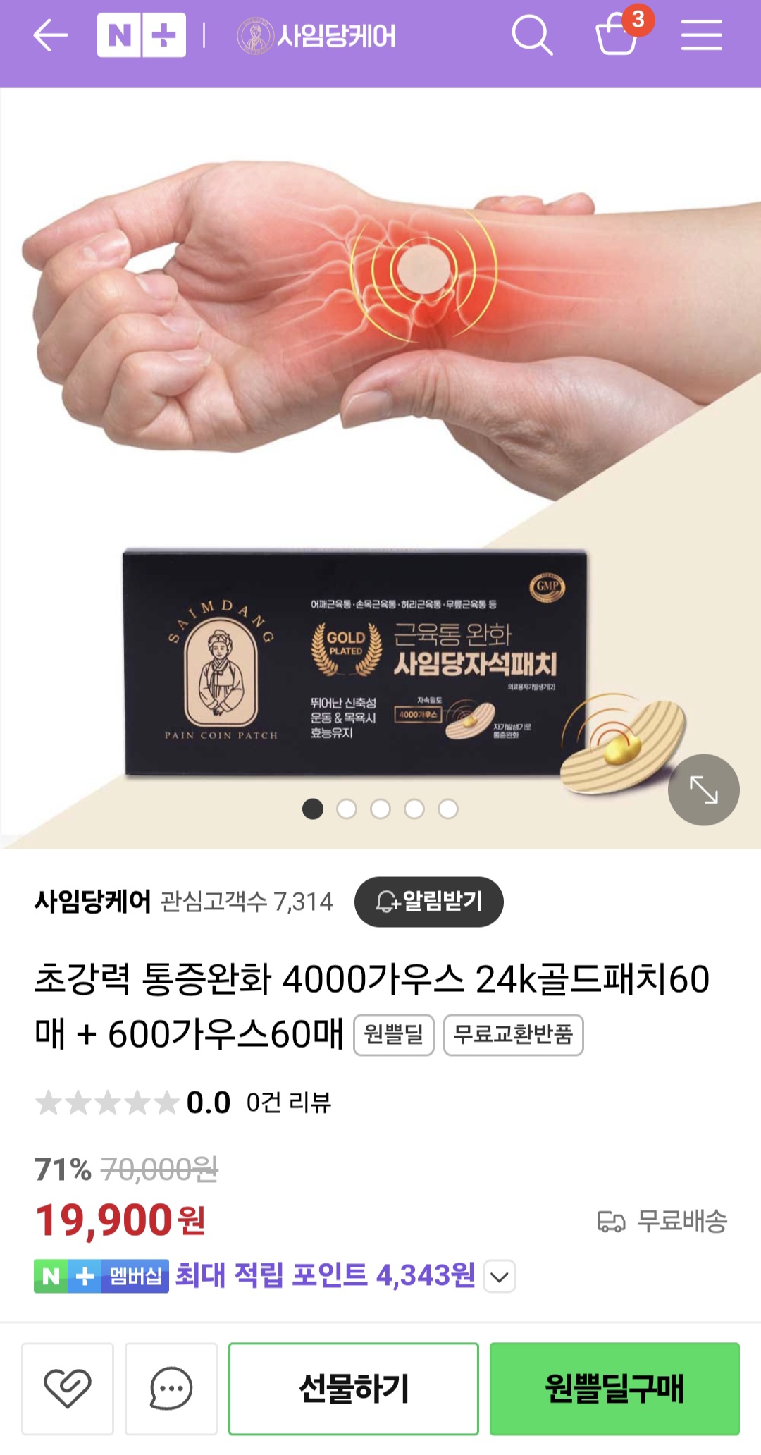 [네이버] 초강력 통증완화 4000가우스 24k골드패치60매 + 600가우스 60매 (19,900원/무료)