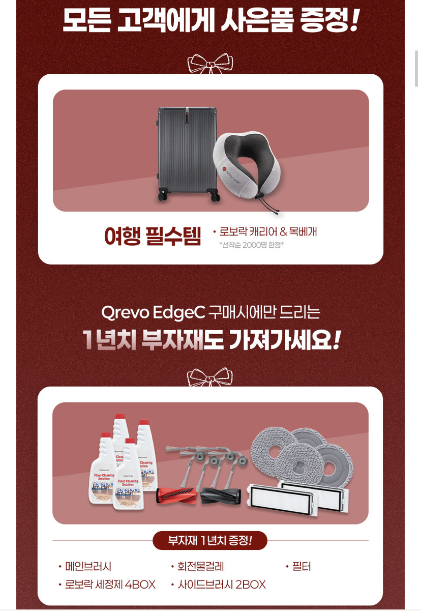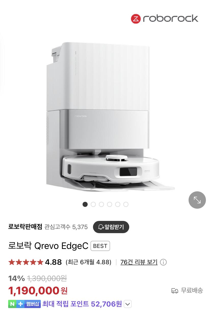 [네이버] 로보락 Qrevo EdgeC 로봇청소기 + 1년치 부자재 (1,190,000원/무료)