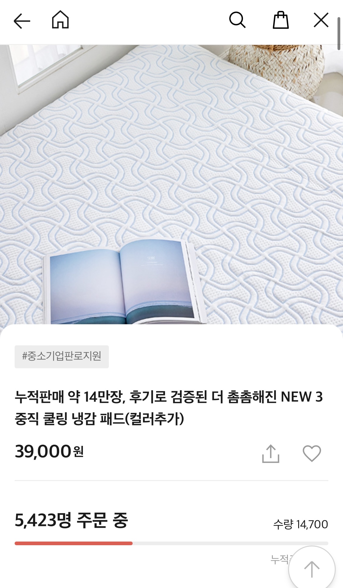 [카카오메이커스] 국산 휴비스 듀라론 프리미엄 냉감패드 (39,000원/무료) > 국내핫딜