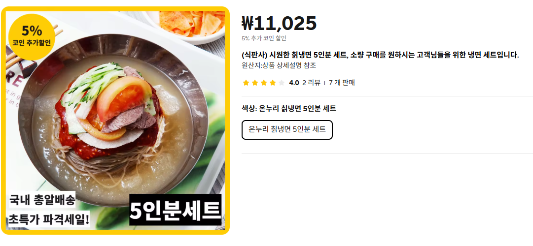 알리)온누리 시원한 칡냉면 5인분 11,025원 / 무배